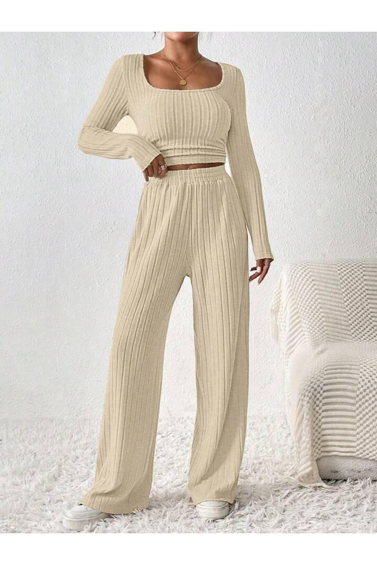 crop sweatshirt ve geniş paça eşofmandan oluşur.