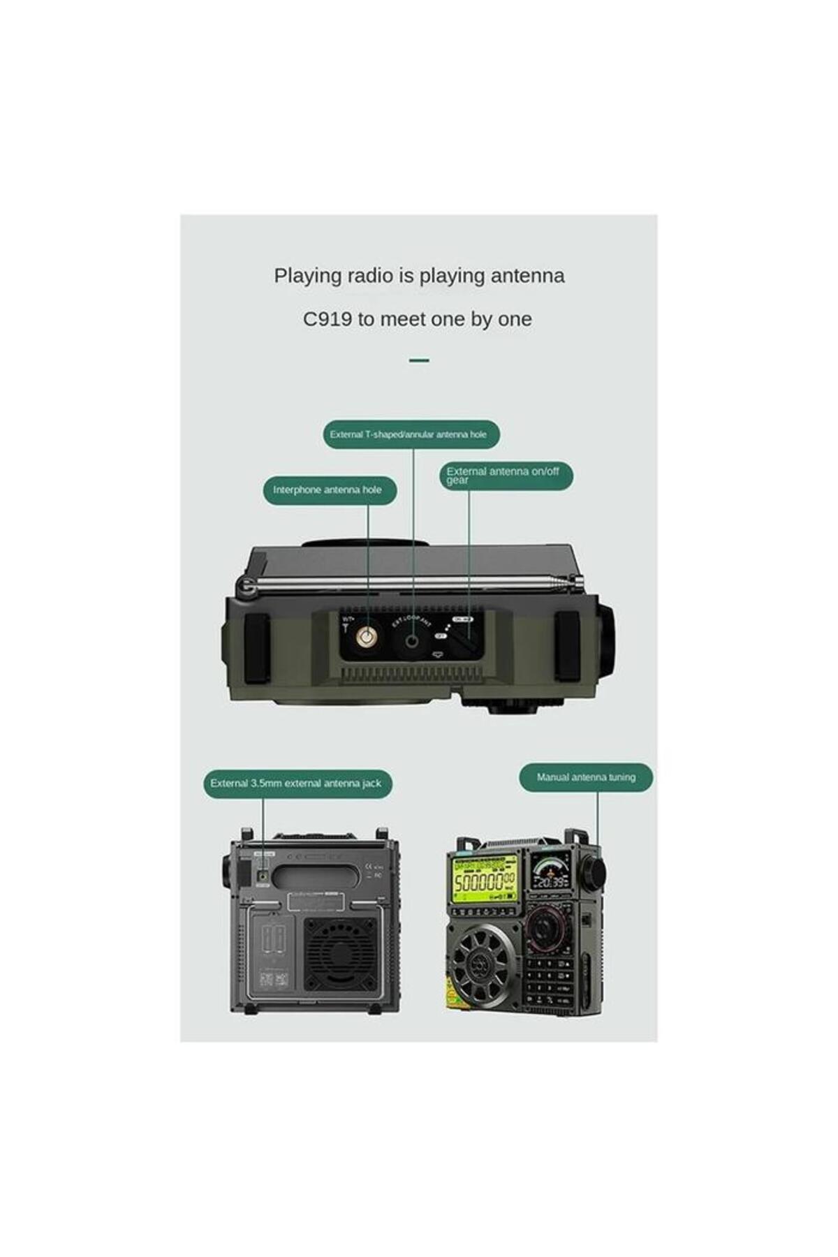 HRD-C919 FM MW SW kısa dalga radyo taşınabilir havacılık bant radyo alıcısı 5000ma pil
