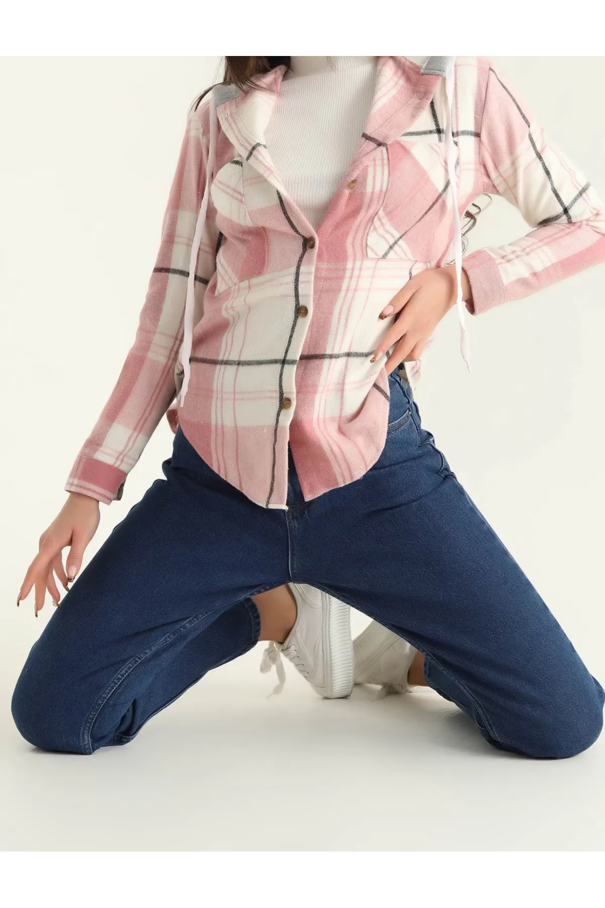 Yeni Sezon Pudra Kapüşonlu Oduncu Kaşe Gömlek Ceket