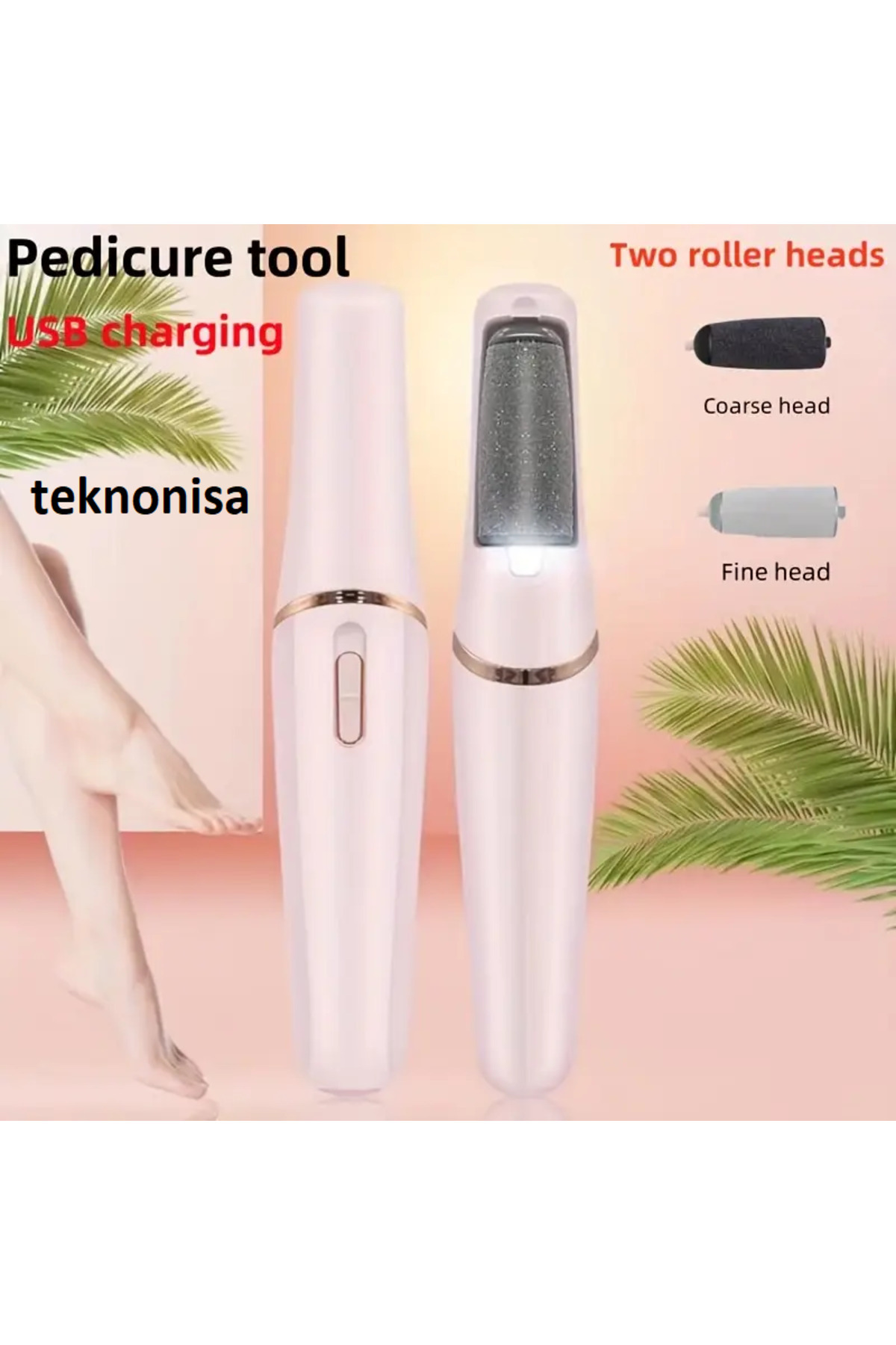 TEKNONİSA 19X7 CM USB Şarj Edilebilir Elektrikli Ayak Pedikür Aleti - Şık Beyaz Altın Vurgularla, Pürüzsüz Ayaklar için Çift Rulo Başlıklı, Taşınabilir Ölü Deri & Nasır Giderici, 500mAh Lityum Pil, Ev Spa Deneyimi, Ayak Düzleştirme Aracı|Ergonomik Tasarım|LED IŞIK ÖZELİKLİ