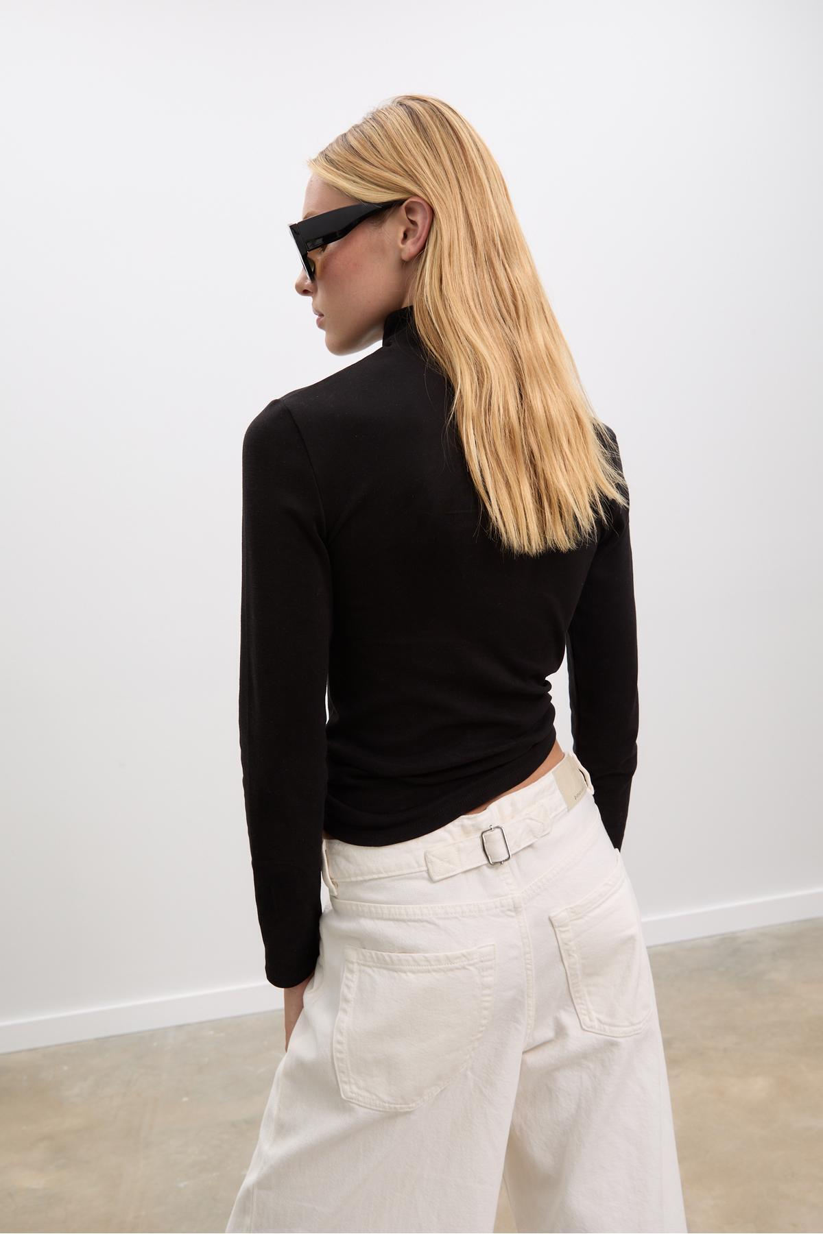 Elastan içeren pamuklu, yumuşak dokunuşlu kumaştan üretilmiş basic tişört.