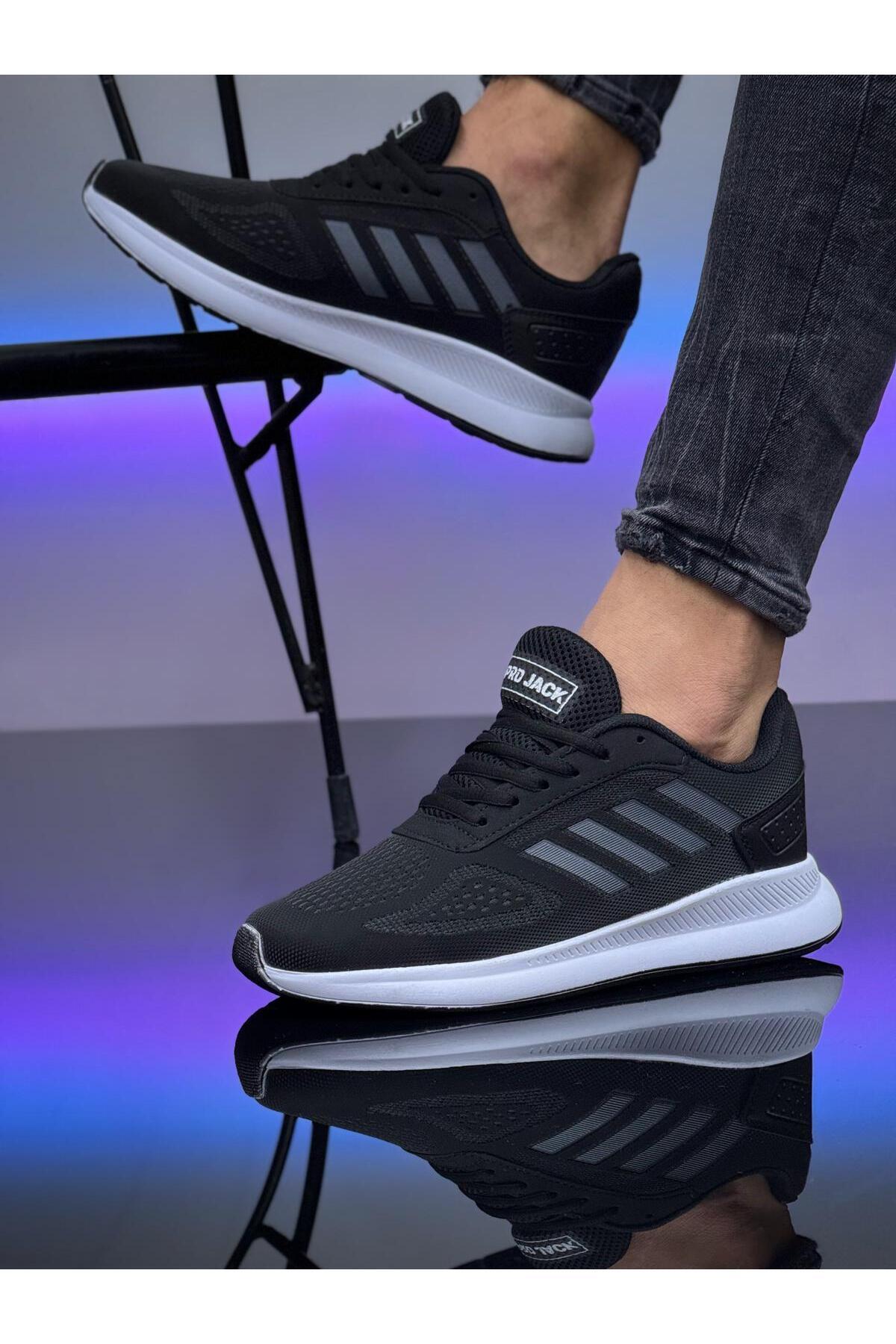 Unısex Siyah Beyaz Dört Bant Bağcıklı Günlük Spor Ayakkabı WSB4116