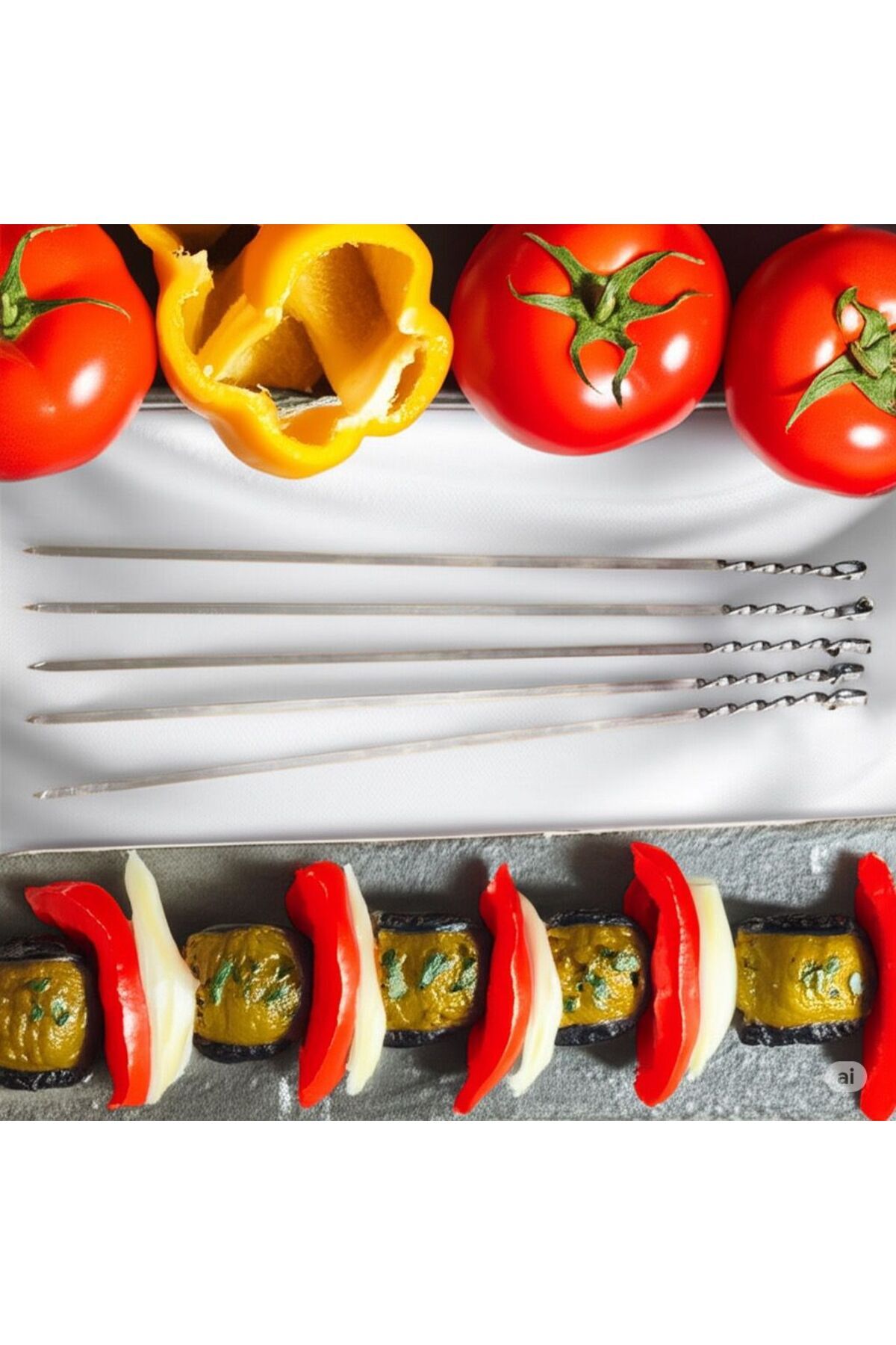 Et, domates, biber, soğan ve diğer sebzeleri düzenli şekilde dizmek ve pişirmek için özel olarak tasarlanmıştır.