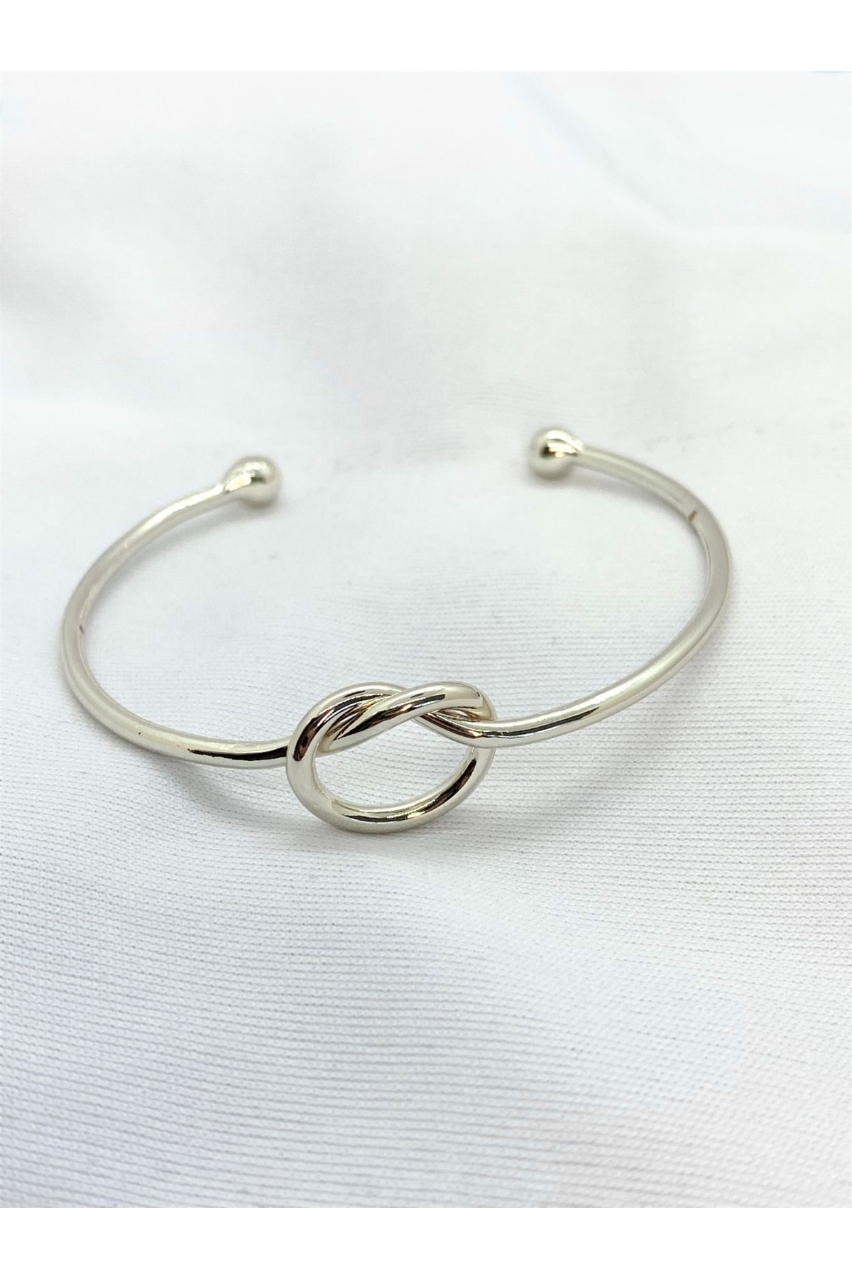 Altın düğüm detayıyla zenginleştirilmiş tasarım, klasik ve modern çizgileri harmanlayarak hem günlük hem de özel günlerde tercih edilebilir.