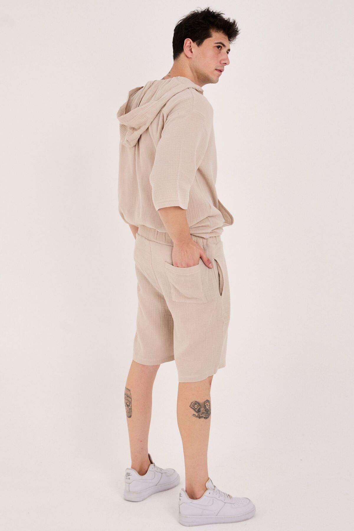 %100 Pamuk Bol Kalıp Bej Müslin Şort 2XS-10XL Beden Seçeneği