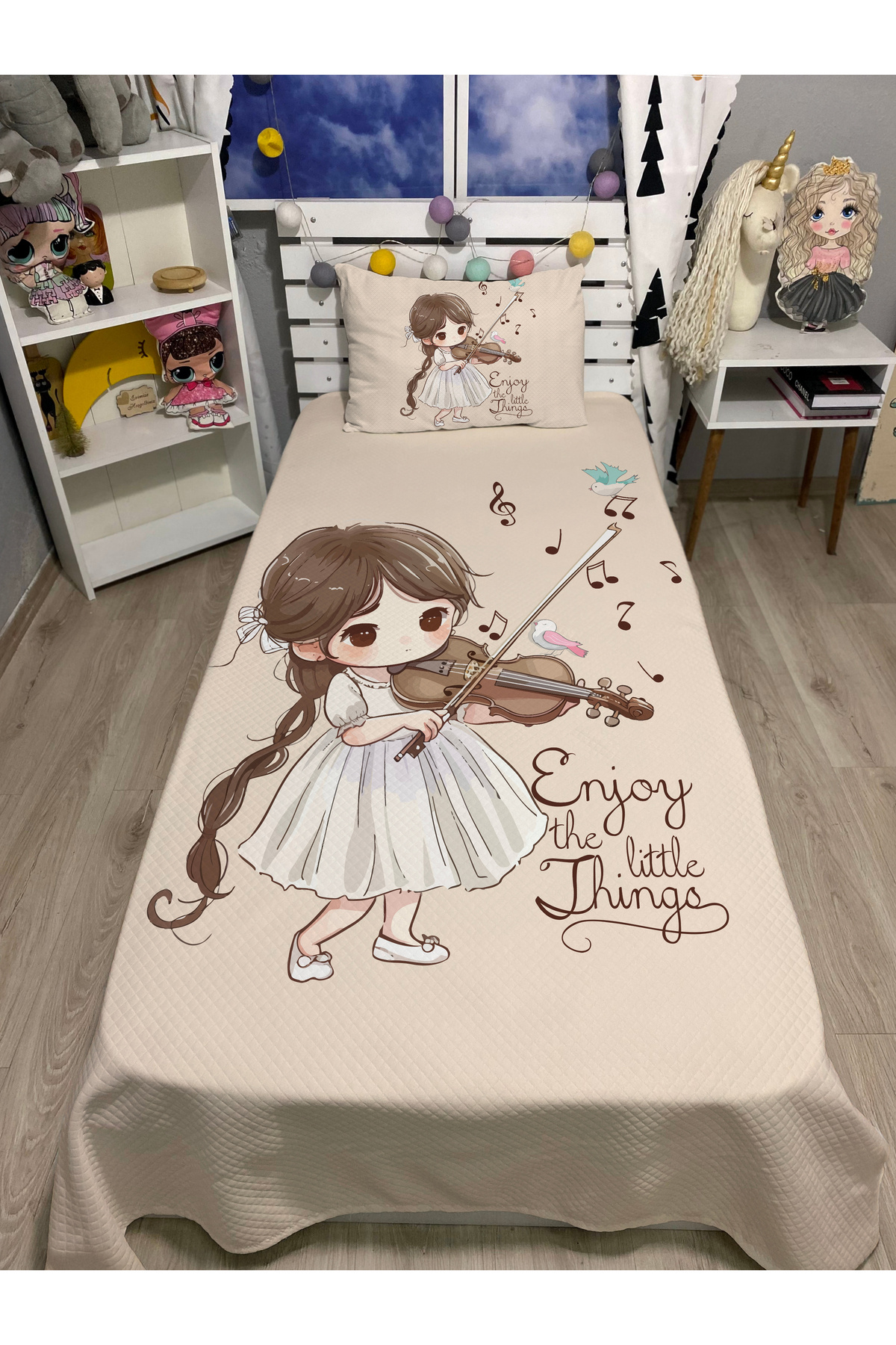PRENSES Desenli Bebek Çocuk Tek Kişilik PİKE ve YASTIK KILIFI Yatak Örtüsü Takımı