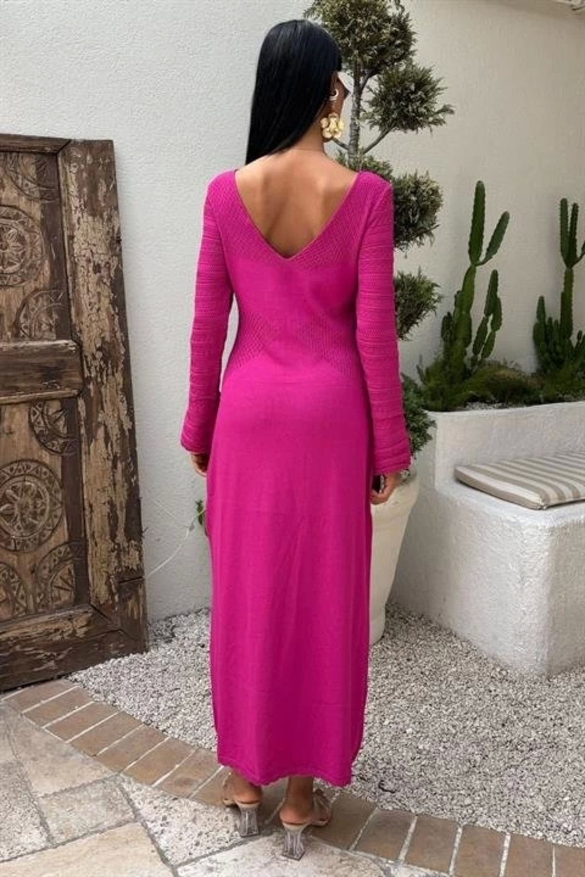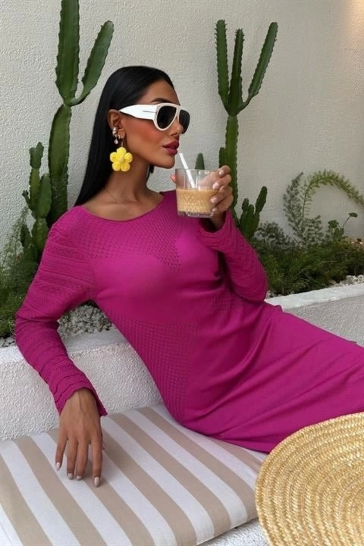 • Ajur Detaylı Bisiklet Yaka Triko Elbise 2861