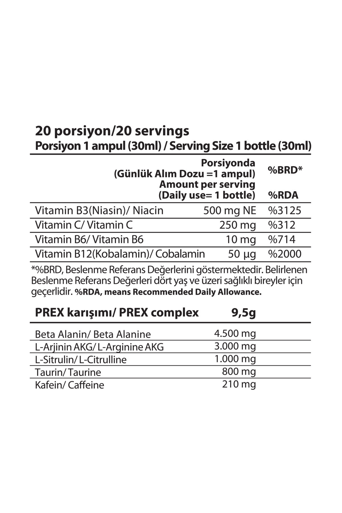 Prex pre workout (antreman öncesi) kullanımına uygundur ve antrenman performansınız ve enerjinizi arttırma konusunda yardımcı olmaktadır.