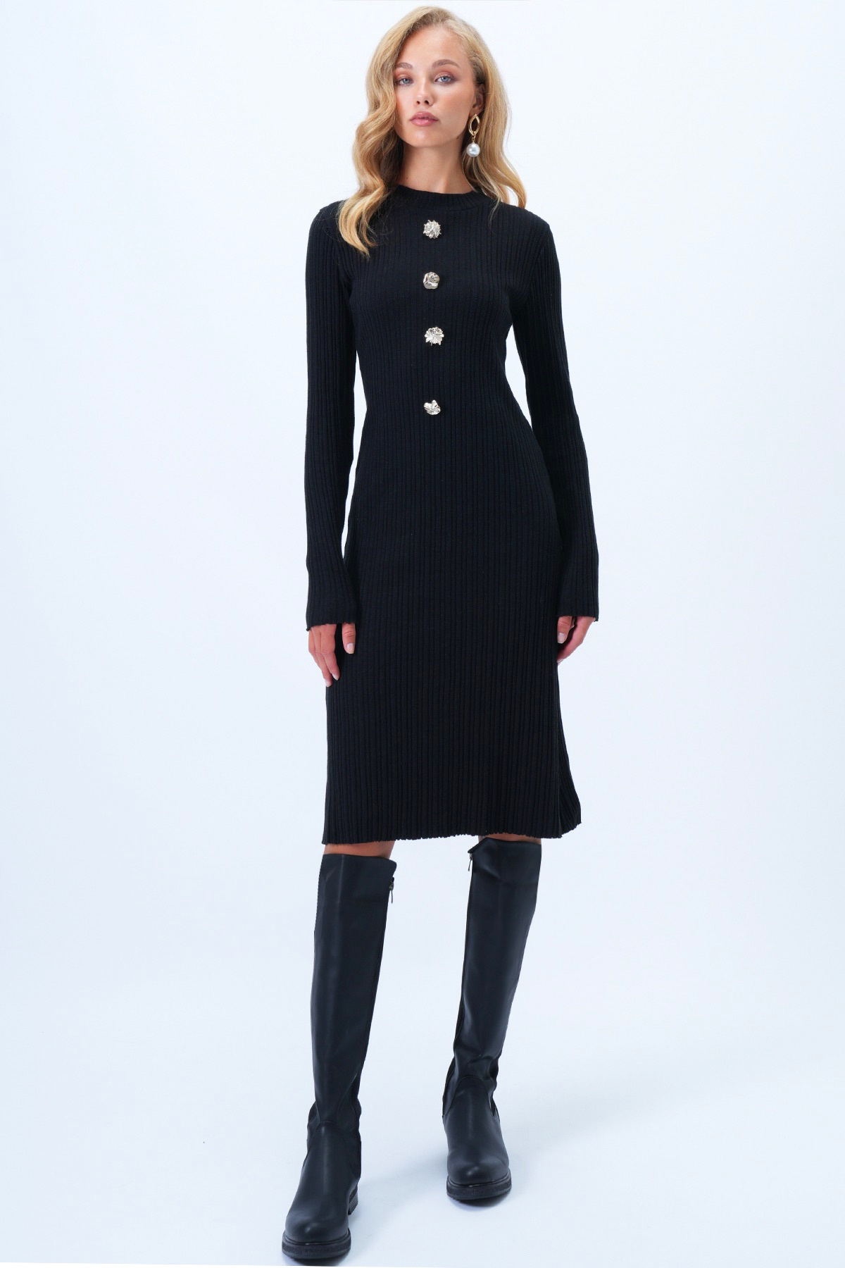 Sade Ve Zarif Görünümüyle Öne Çıkan Bu Midi Boy Elbise, Kendinden Dokulu Kumaşıyla Modern Bir Şıklık Sunar. Bisiklet Yaka Tasarımı Minimalist Bir Duruş Sergilerken, Ön Kısmındaki Düğme Detayları Modele Klasik Bir Hava Katar. Rahat Kesimi Ve Akışkan Yapısıyla Gün Boyu Konfor Sağlayan Bu Parça, Hem Ofis Stilinde Hem De Günlük Şıklıkta Kolayca Kullanılabilir.