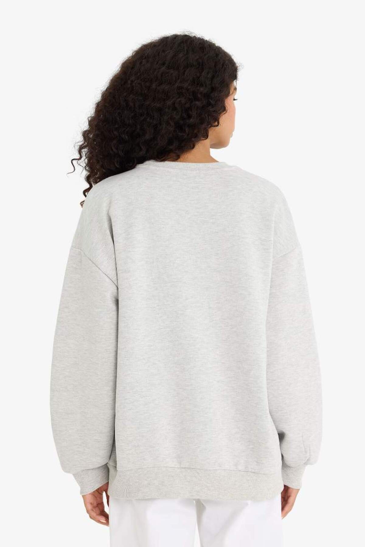Oversize Geniş Kalıp Bisiklet Yaka Baskılı Kalın Sweatshirt, rahat geniş kesimi ve dikkat çekici baskısıyla modern sokak stiline uygun.