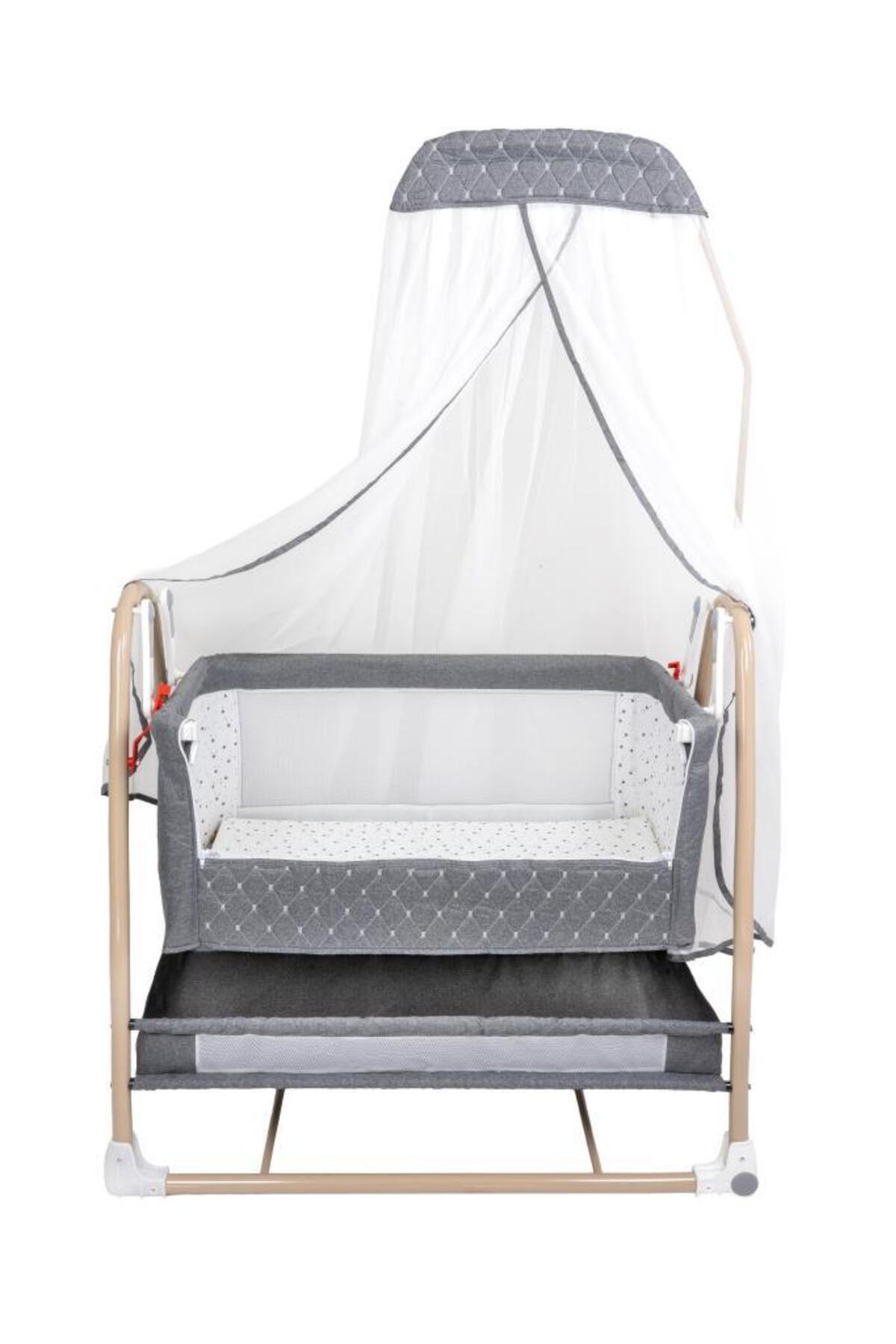 Royal Anne Yanı Beşik Tüllü Sepet Beşik Sallanabilir Bebek Beşiği Anne Yanı Beşik