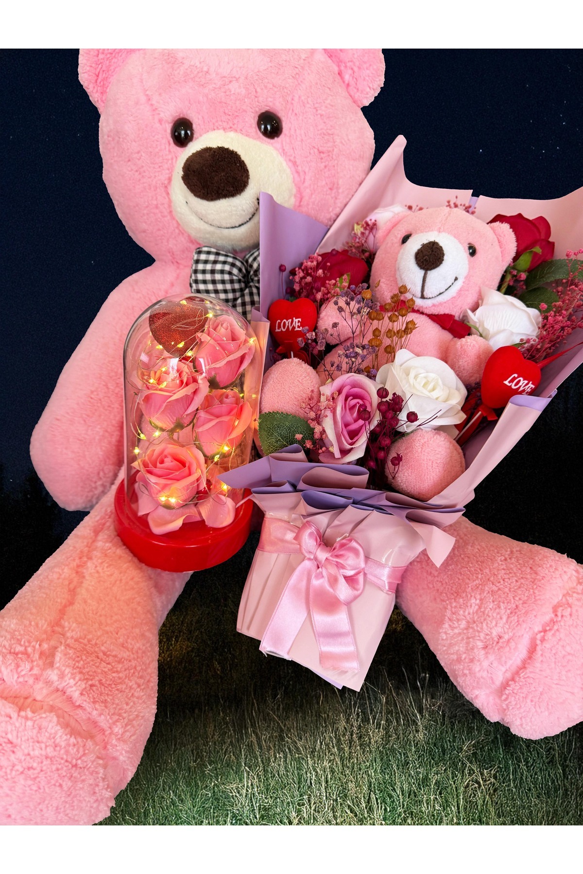 - 90 cm boyutundaki pembe ayıcık, sevimli tasarımıyla dikkat çeker ve hediyenize ekstra bir neşe katar.