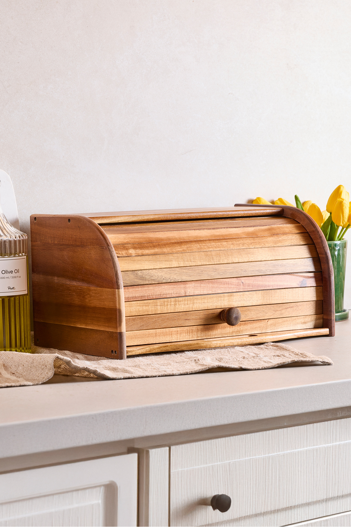 -Akasya Ekmek Dolabı, mutfak dekorasyonunuza kolayca uyum sağlayacak şık bir dokunuş ekler.