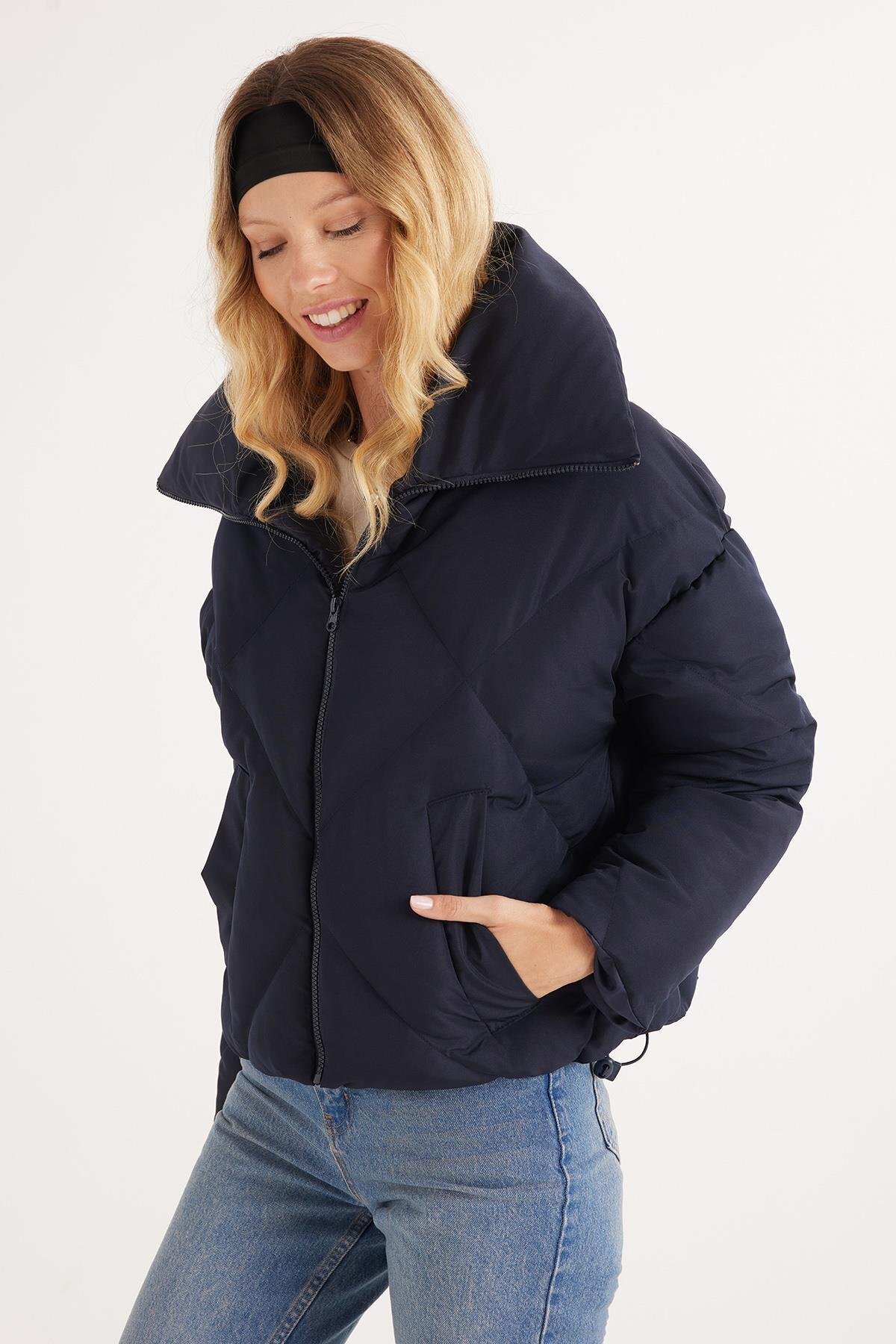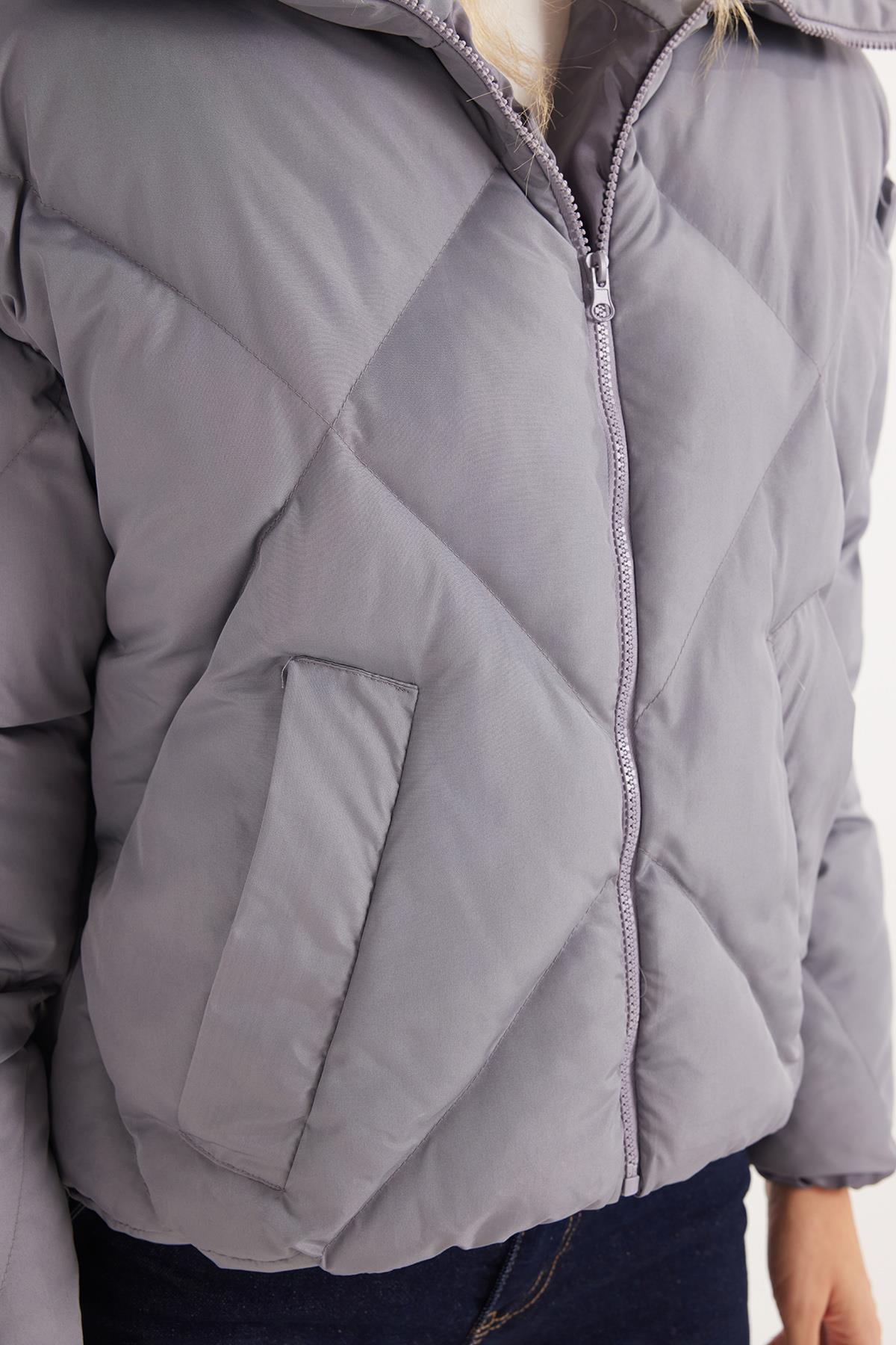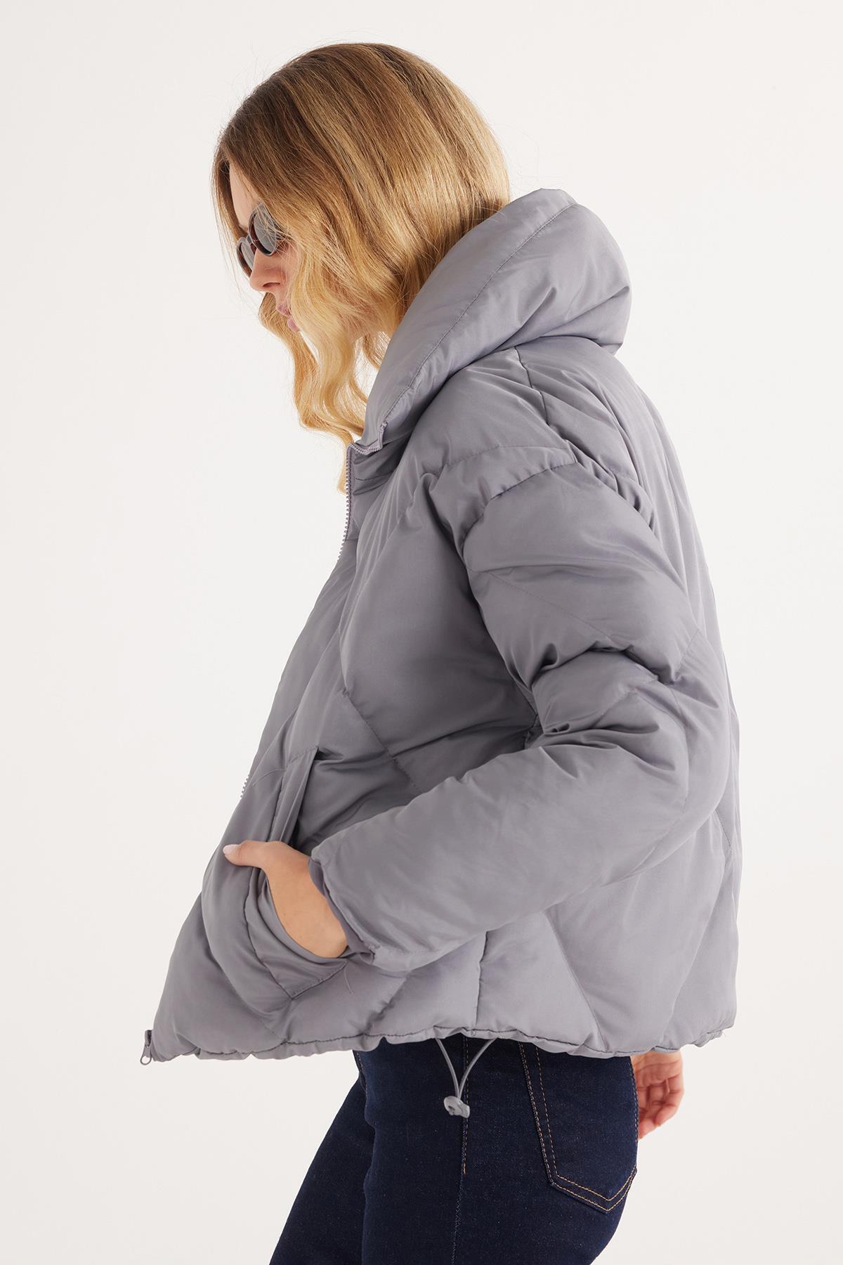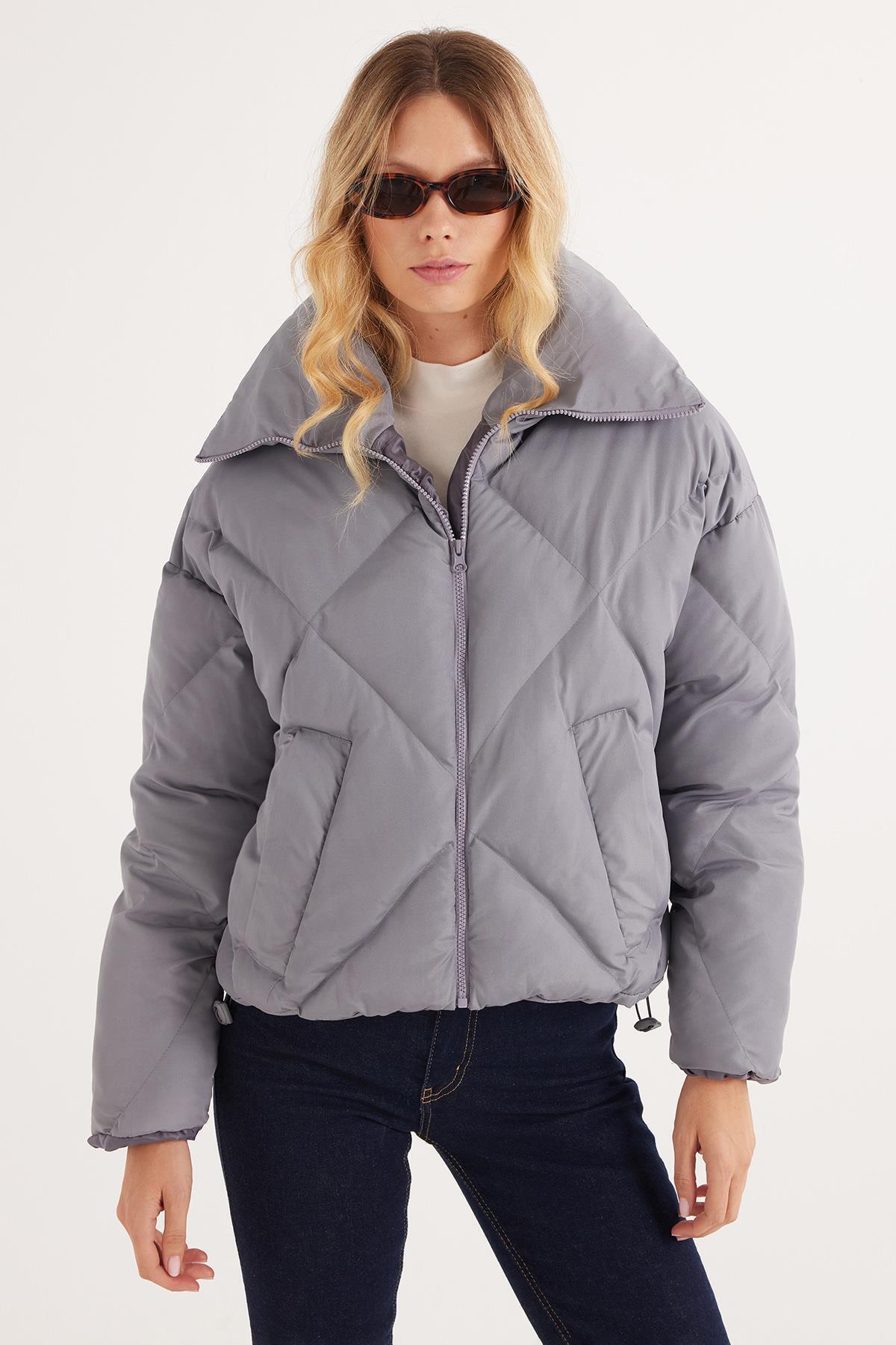 Kadın Oversize Geniş Kesim Şişme Dik Yaka Antrasit Mont