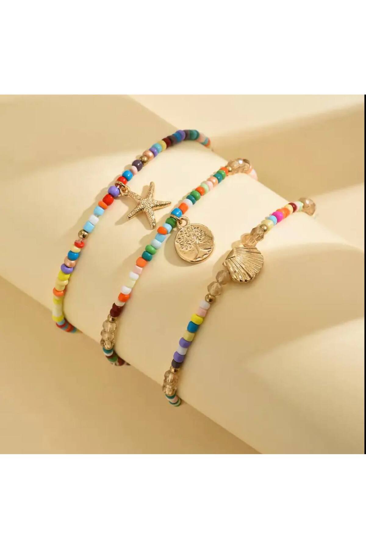 - Gençlerin enerjisini yansıtan üçlü deniz yıldızı, yaşam çiçeği ve deniz kabuğu tasarımlarına sahip ayak bileği halhalı ile stilinizi tamamlayın.