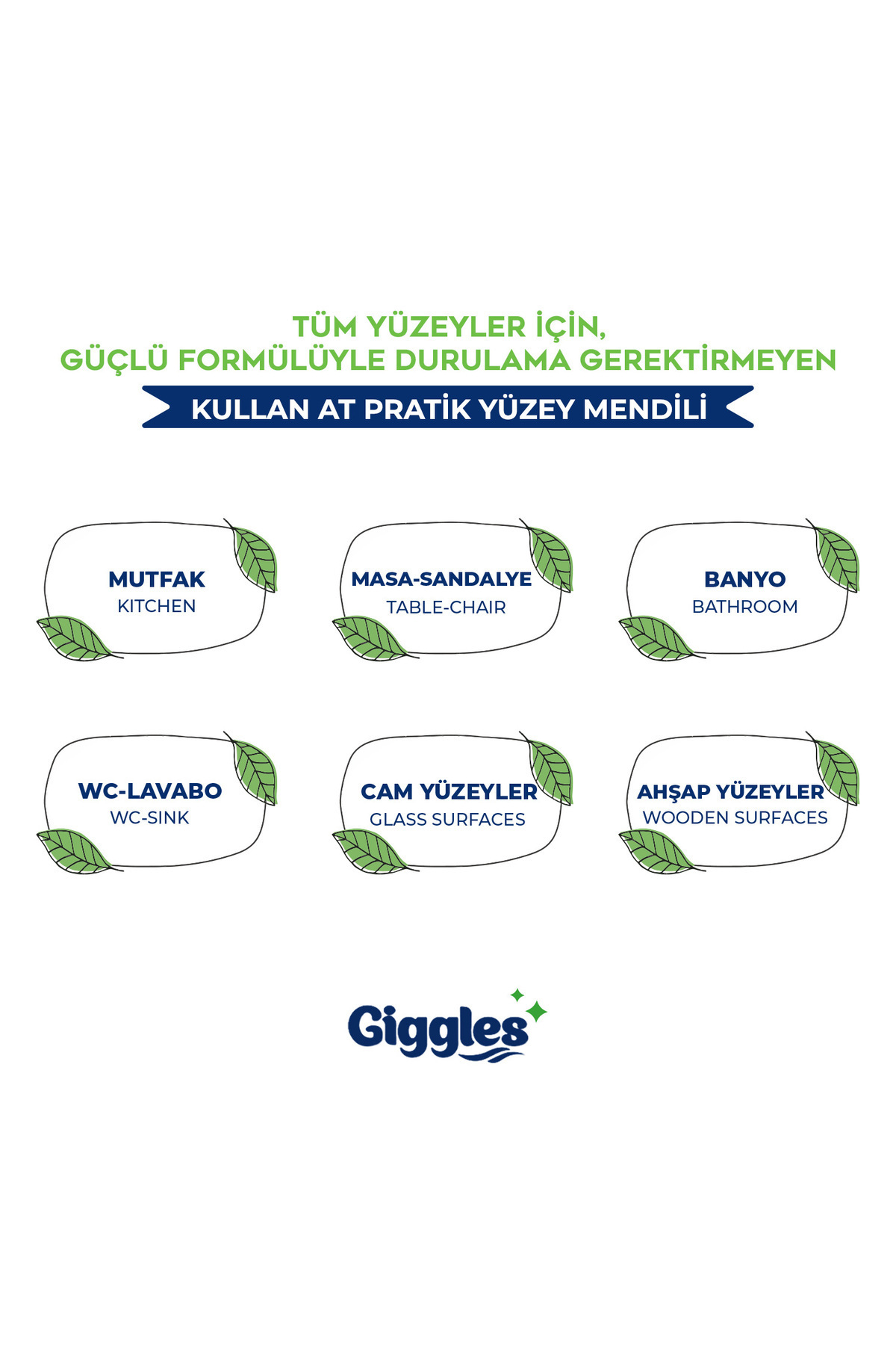 • Giggles Yüzey Temizlik Havlusu Mendili 50 'li 6 Paket 300 Yaprak
