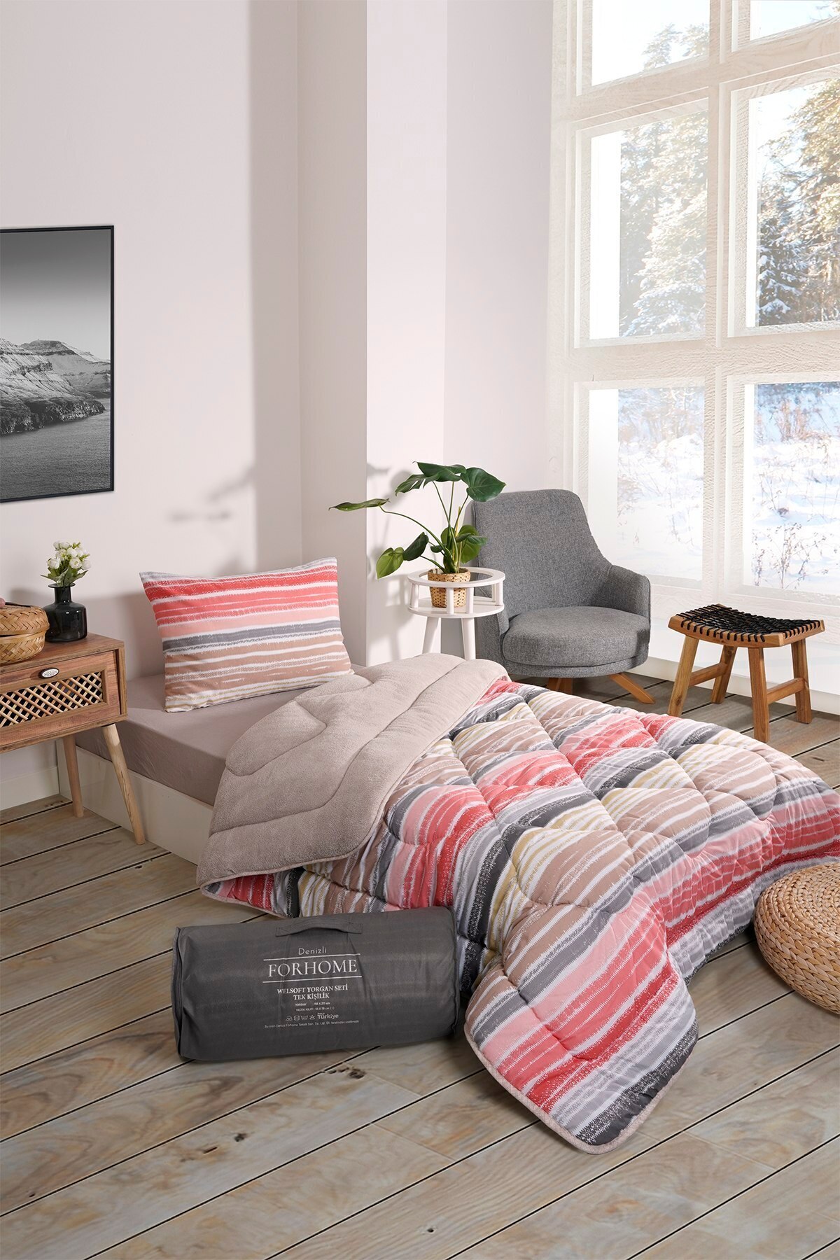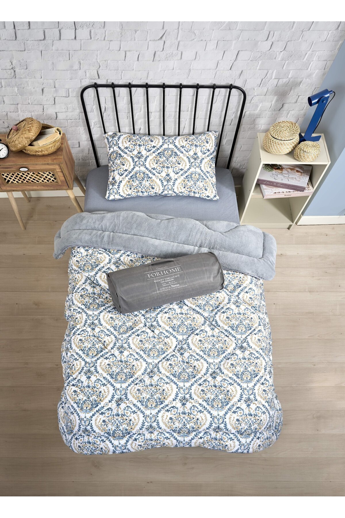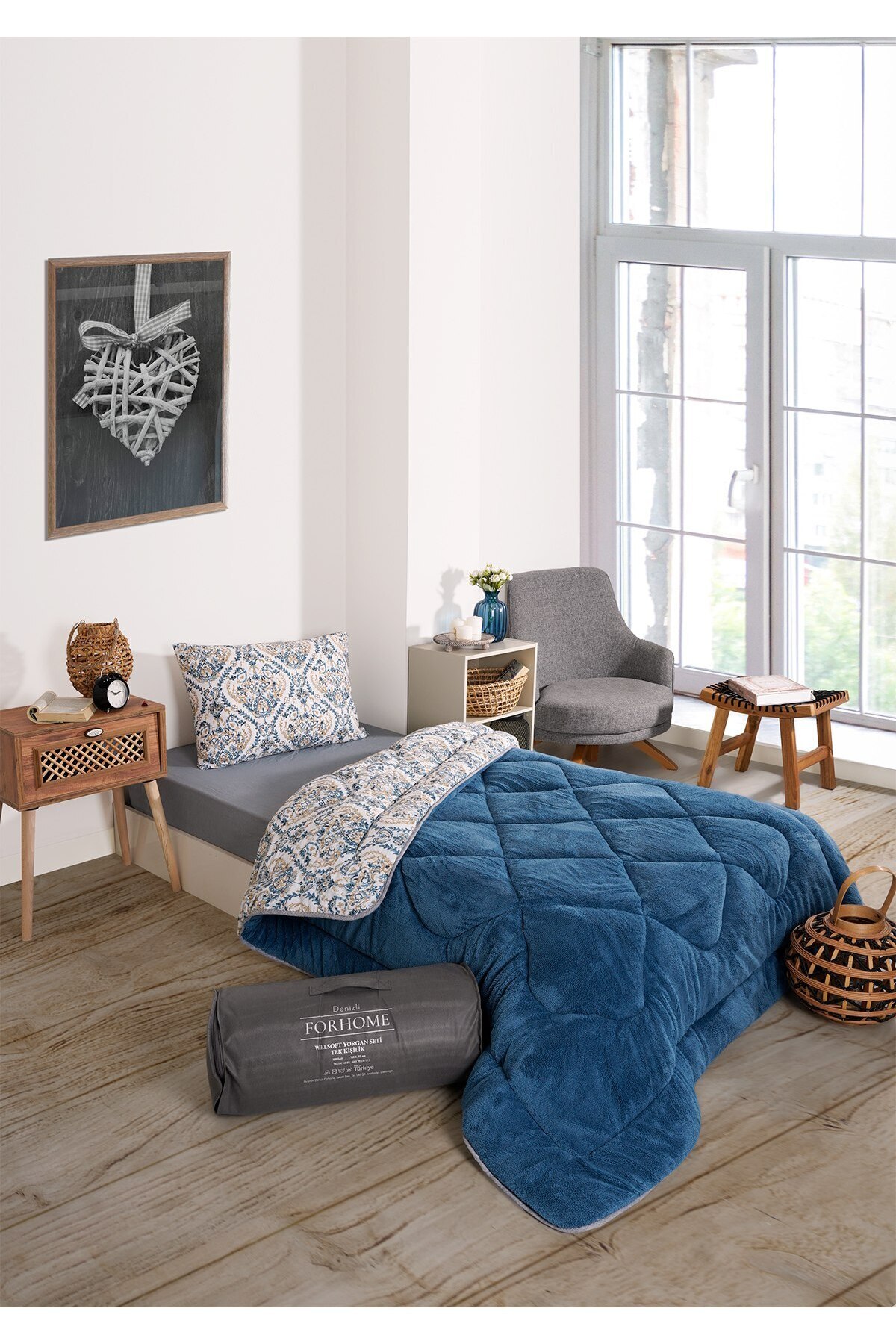 Tek Kişilik Çift Taraflı Lüx Welsoft Elit Yumuşak Polar Yorgan ve Yastık Kılıfı Aksu İndigo