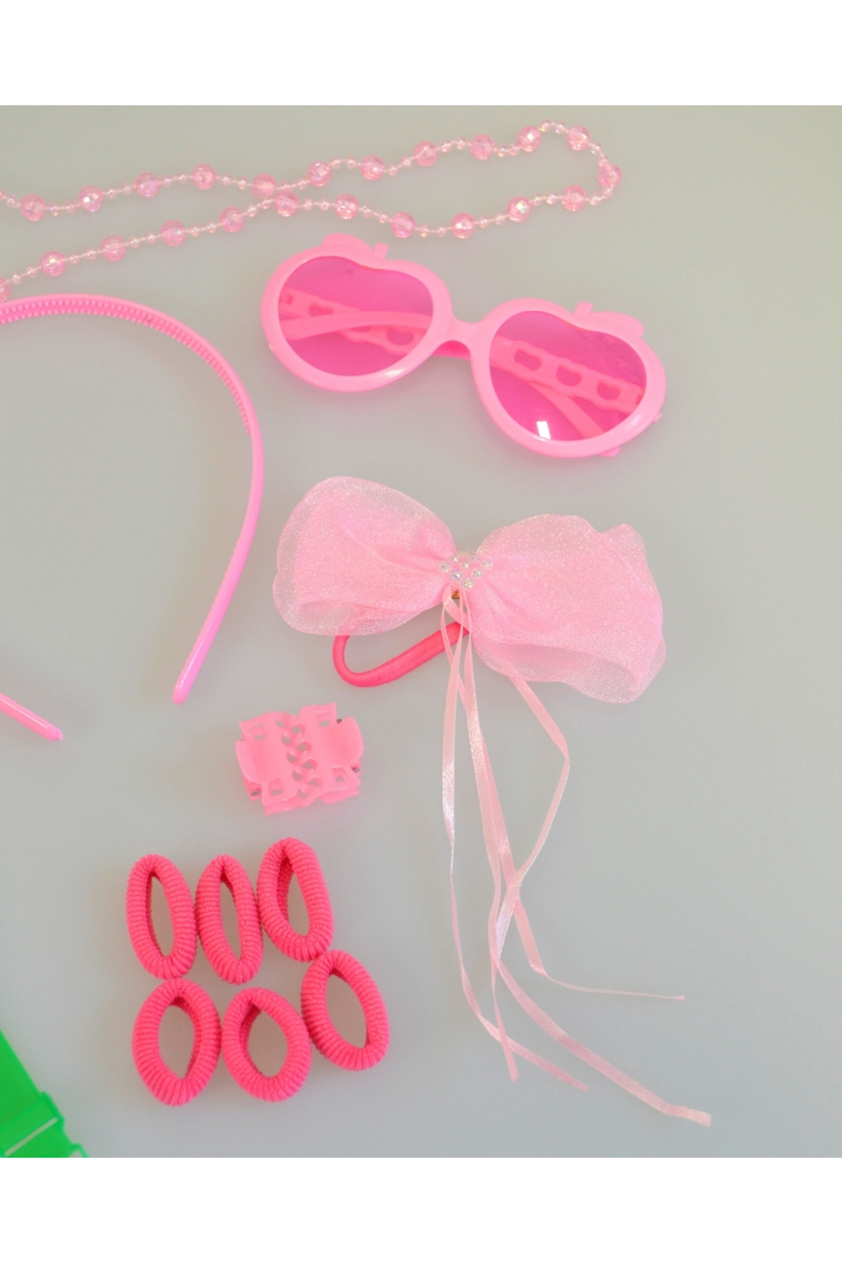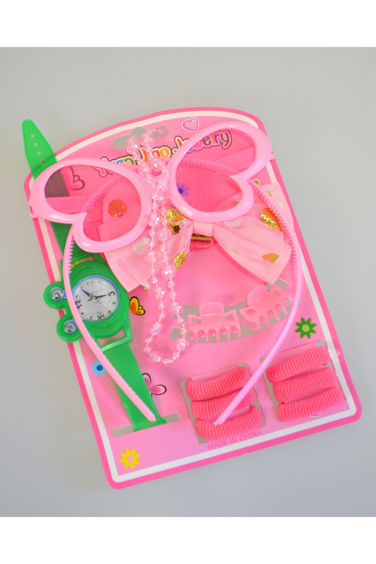 Kız Çocukları İçin Aksesuar Seti | Gözlük + Saat + Toka + Kolye | Renkli ve Eğlenceli Hediye Seti Ye