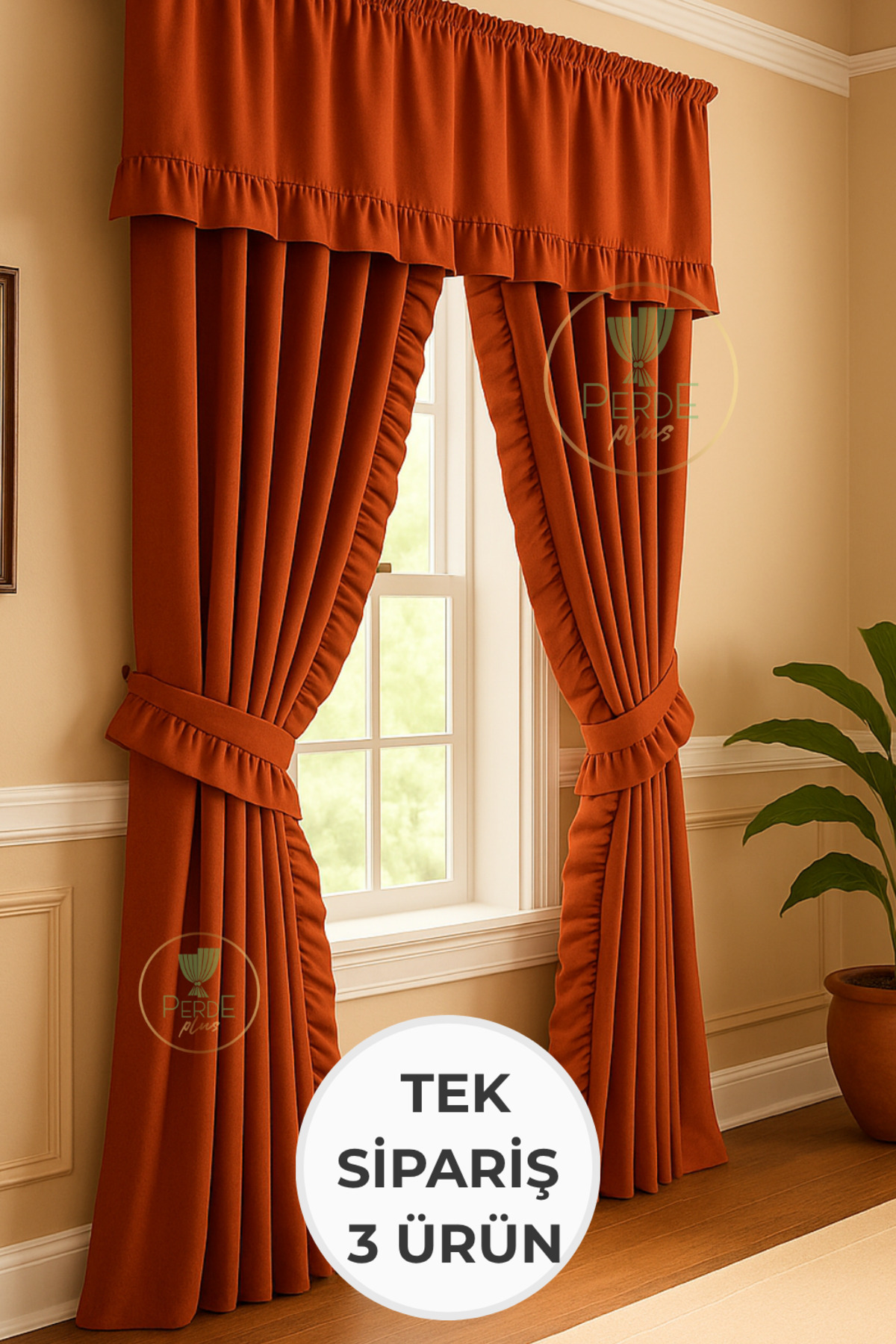 Fırfırlı Keten Perde Takımı – 3’lü Set, Rustik & Korniş Uyumlu
