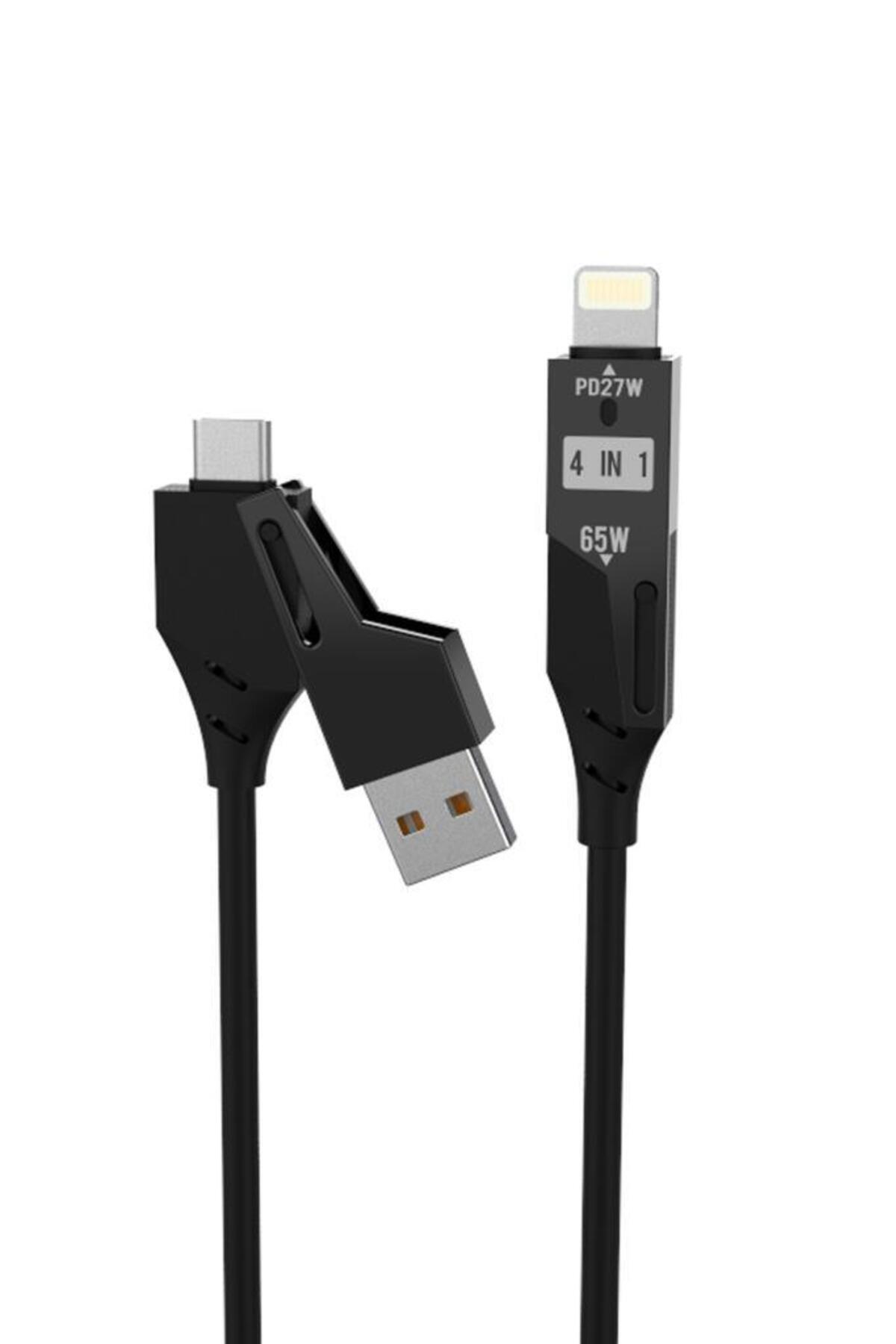 USB-A, Type-C ve Lightning giriş/çıkışları sayesinde çok sayıda cihazla uyumlu olan bu 4'ü 1 arada şarj kablosu, özellikle yoğun kullanıcılar için ideal bir çözümdür.
