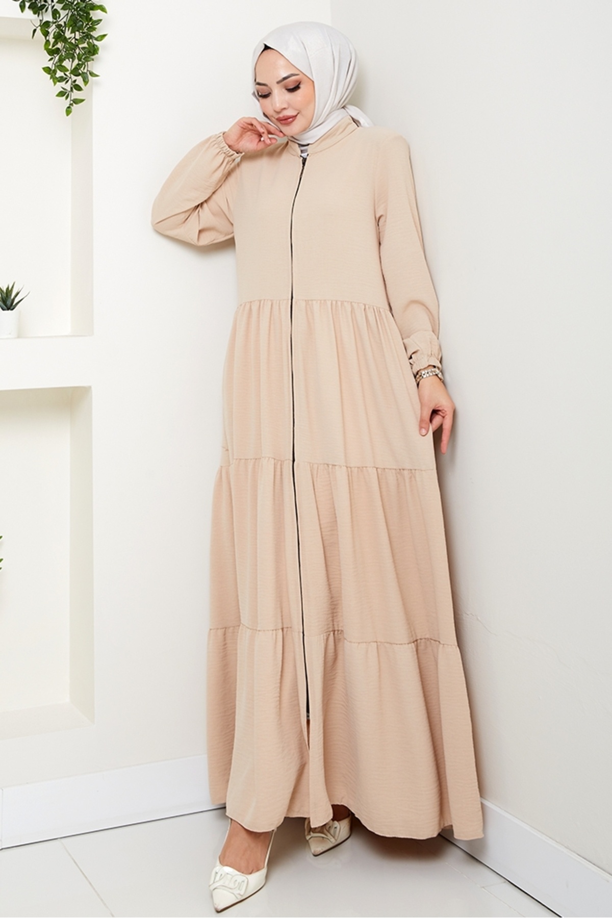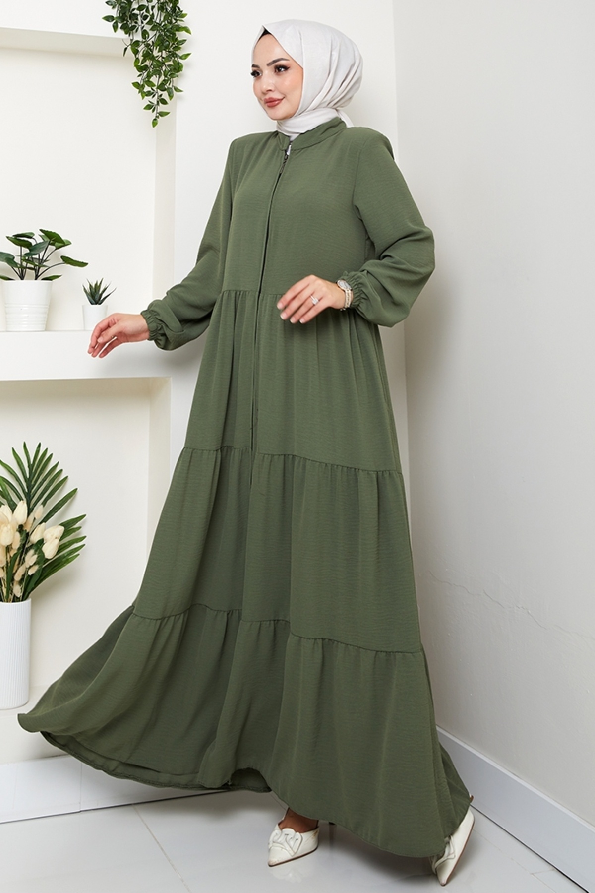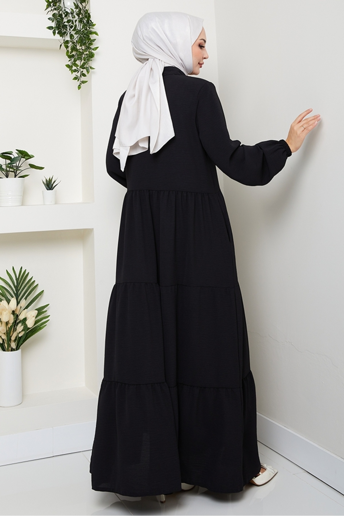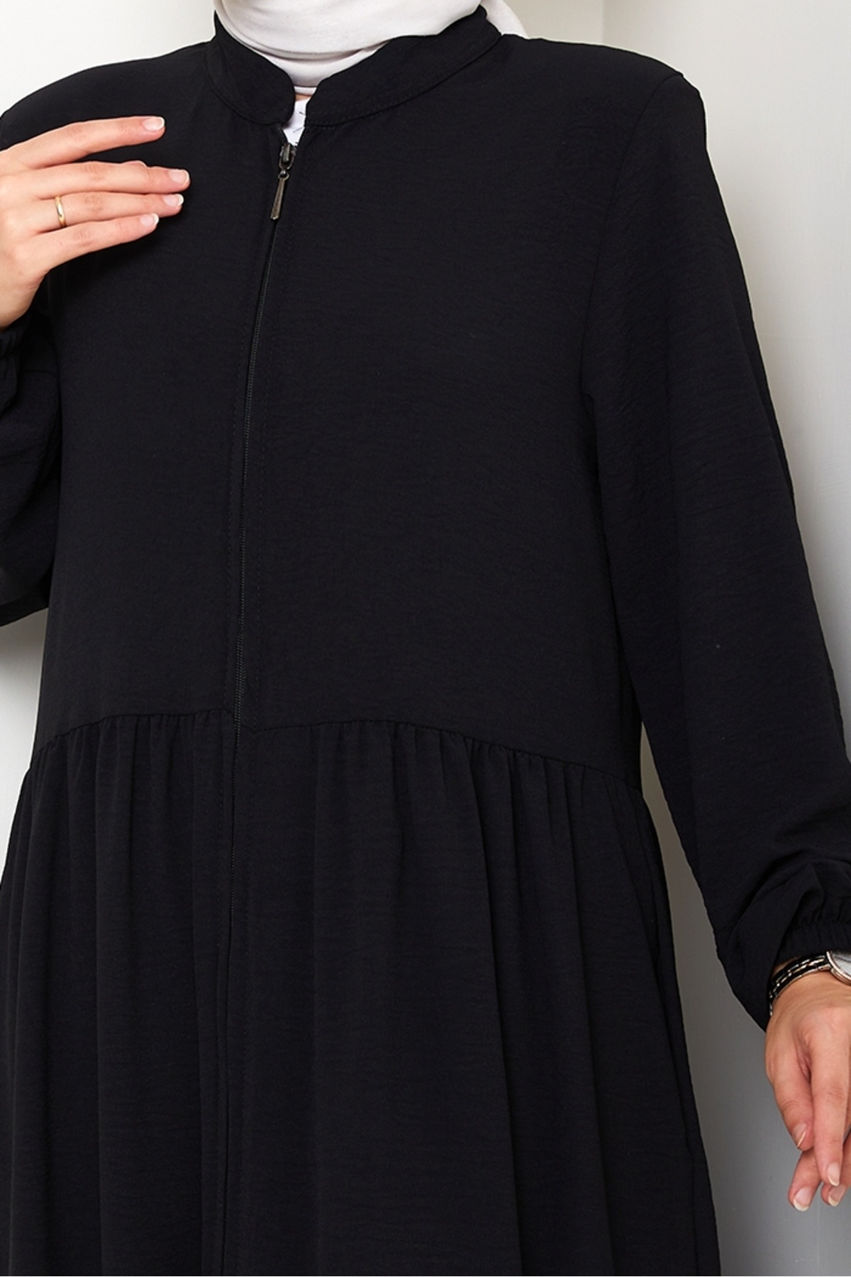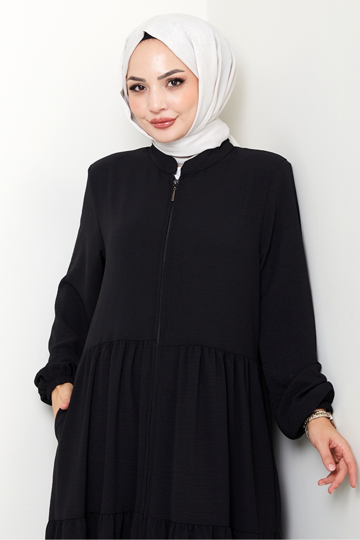 Kat Detaylı Fermuarlı Ferace 1586 - Siyah