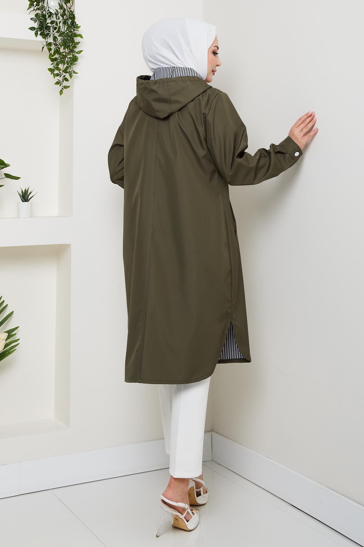 - Haki rengin asaletini yansıtan, mevsim geçişlerinde şıklığınızı korumanız için ideal bir trençkot.