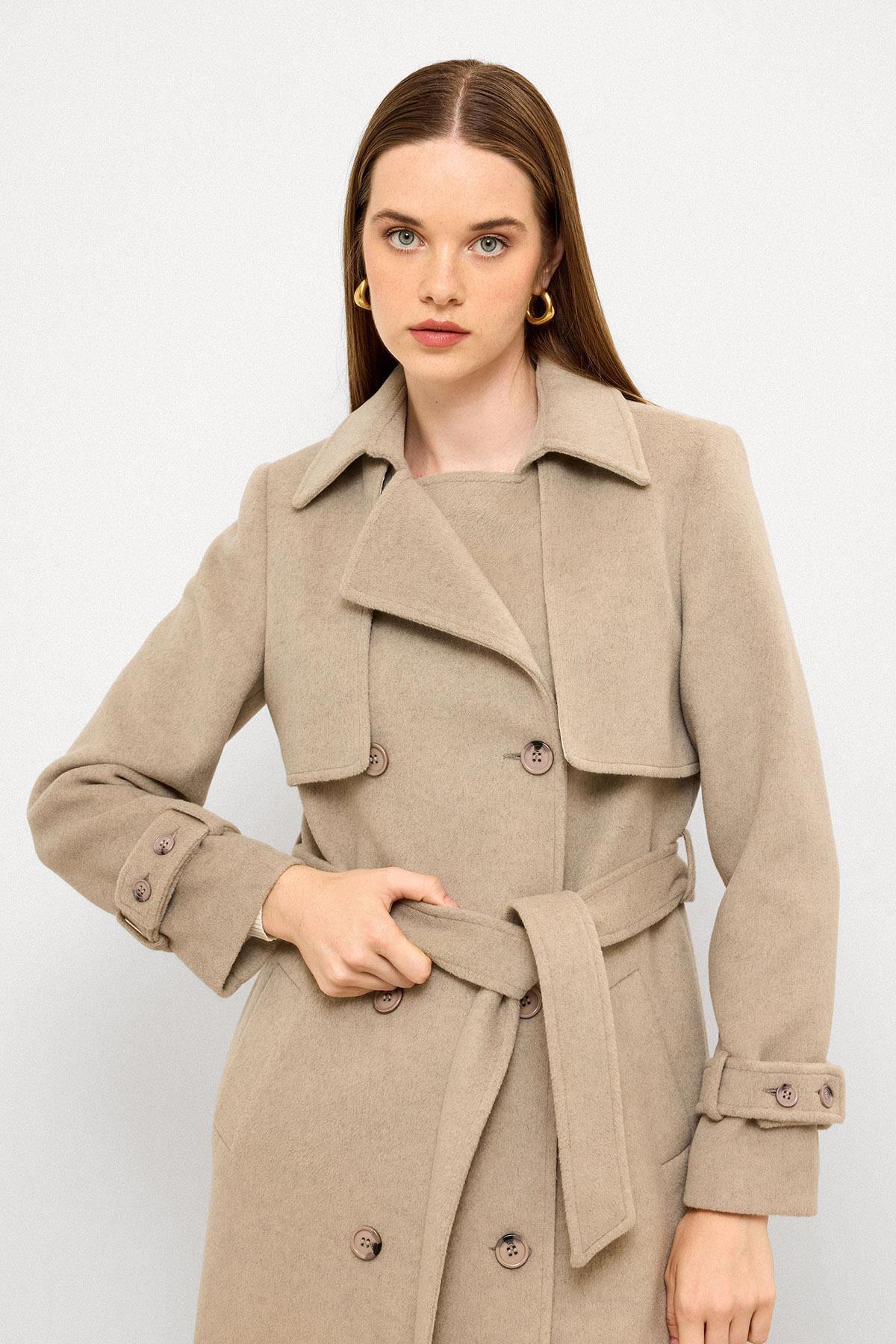 Pelerin Detaylı Kruvaze Kaban TAŞ MELANJ 3091