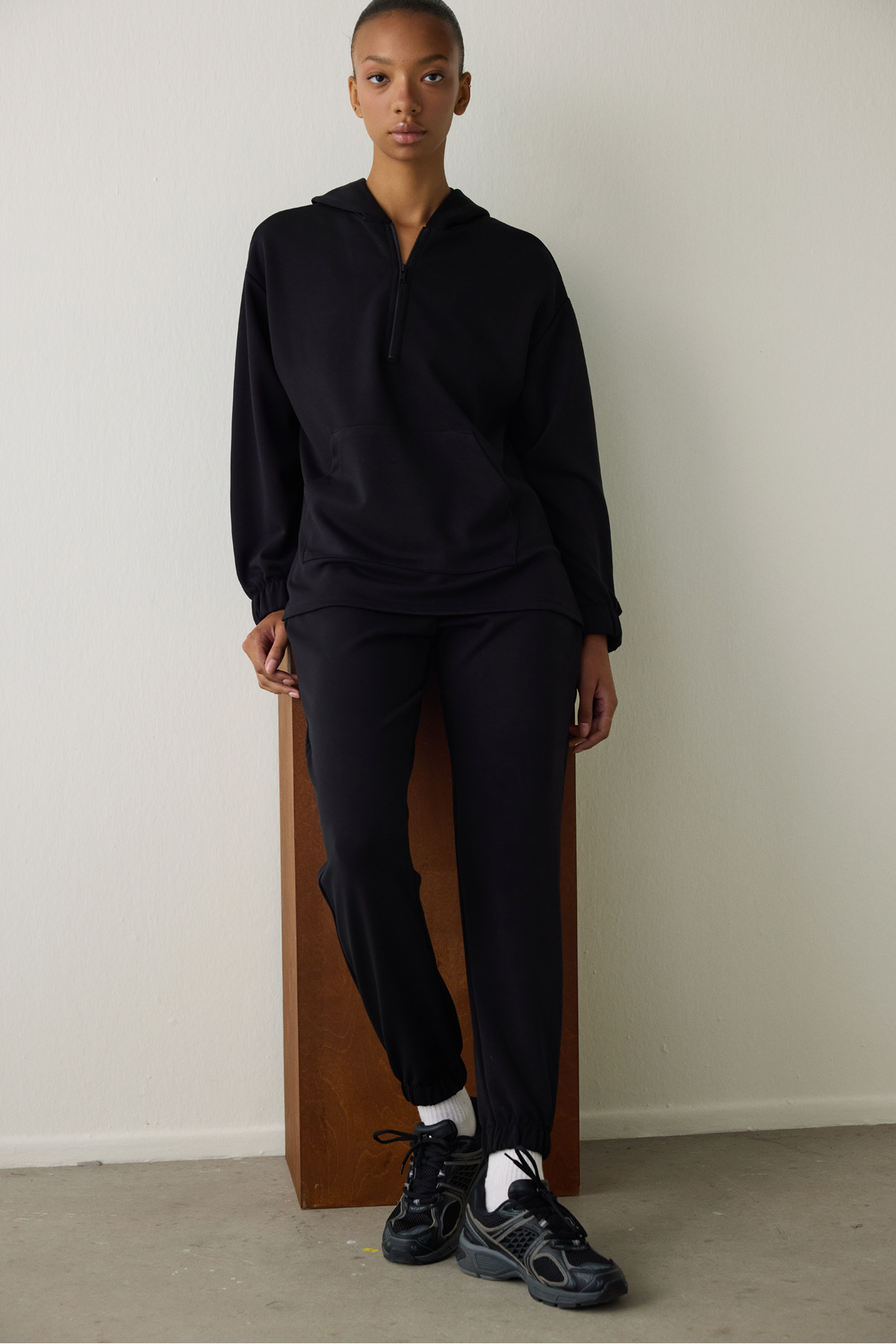 Silky Feel Zipped Sweatshirt, oversize kesimiyle rahat bir giyim sunar.