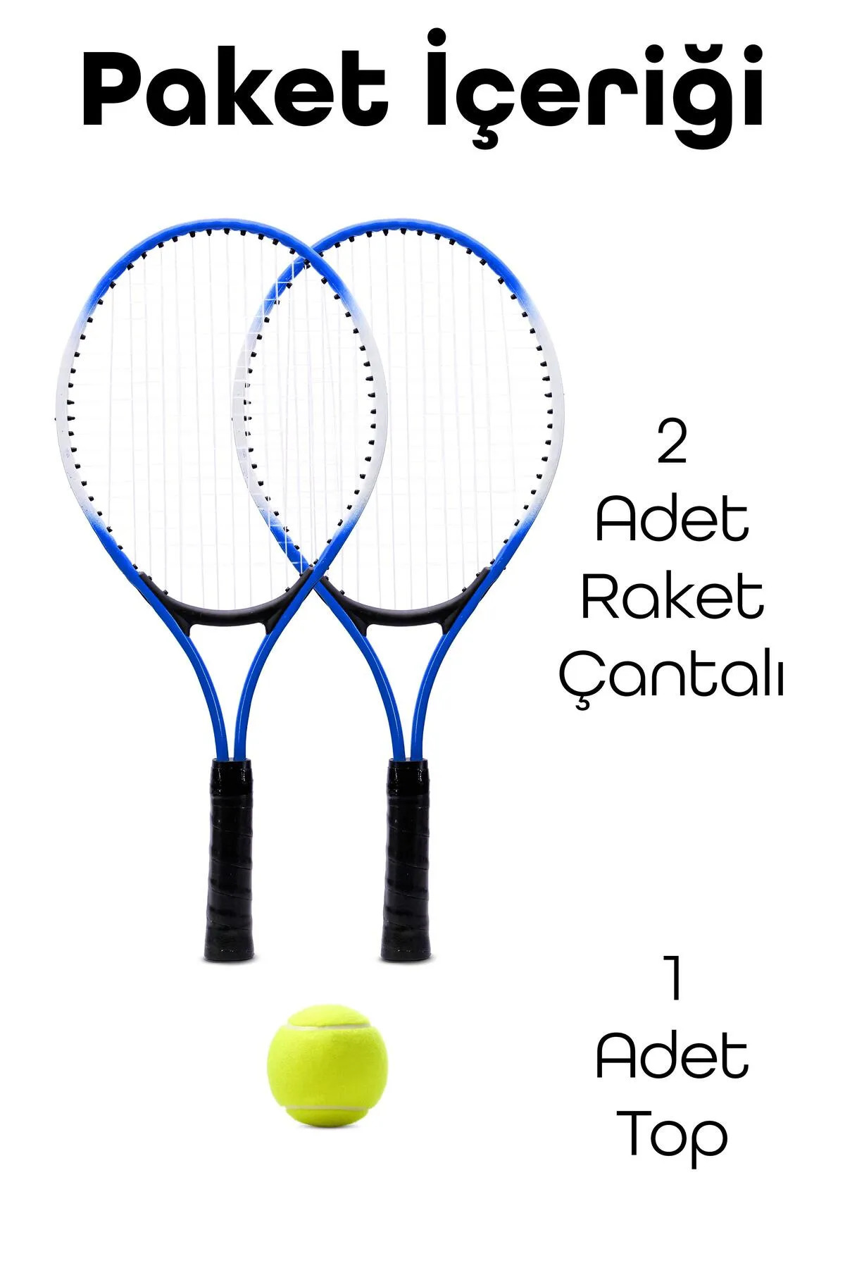 3lü SET Deluxe 21 İnç Çocuk Genç Tenis Raketi SETİ Çantalı Çocuk Tenis Seti L2 53 cm Mavi 670