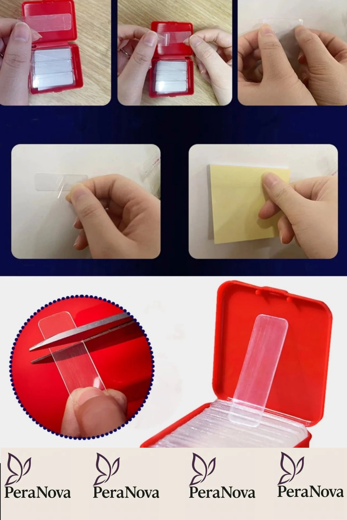 Çift taraflı yapışkan ve yıkanabilir ve tekrar kullanılabilir.
