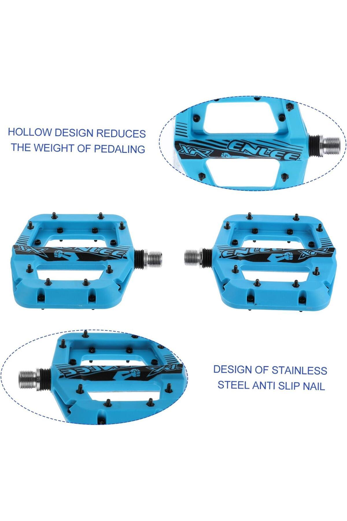 Enlee Renkli Çivili Kaymaz Platform Pedal MTB Rulmanlı Plastik Alüminyum Pedal Ultra Hafif Mavi ÜRÜN ÖZELLİKLERİMalzeme: Çelik, Alüminyum ve Plastik KarışımKullanım: Dağ Bisikletleri, Yol BisikletleriKategori Olarak Ultra Hafif Pedaldır.