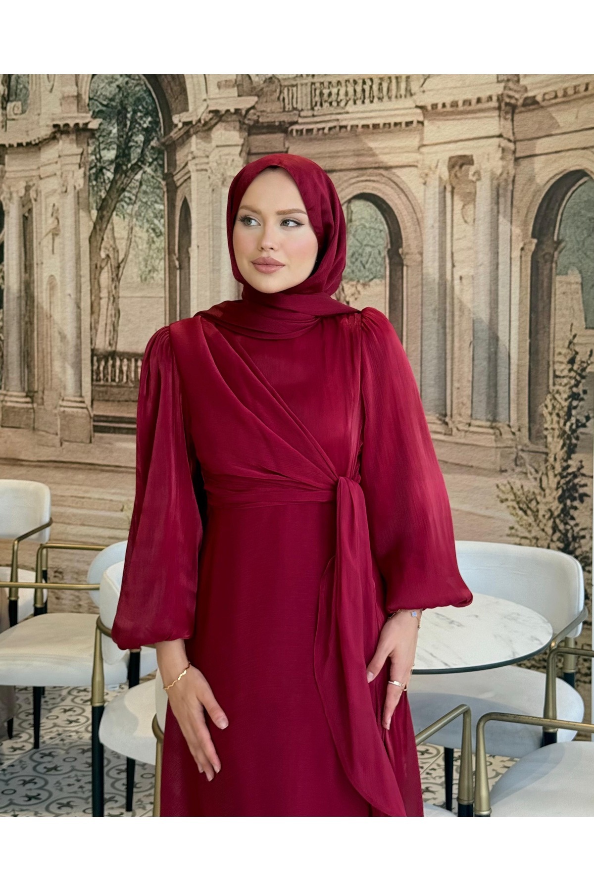 Boyu 146cm İç göstermez önünde kendinden kuşak detayı mevcuttur arka kısmasında fermuarlı mevcuttur.