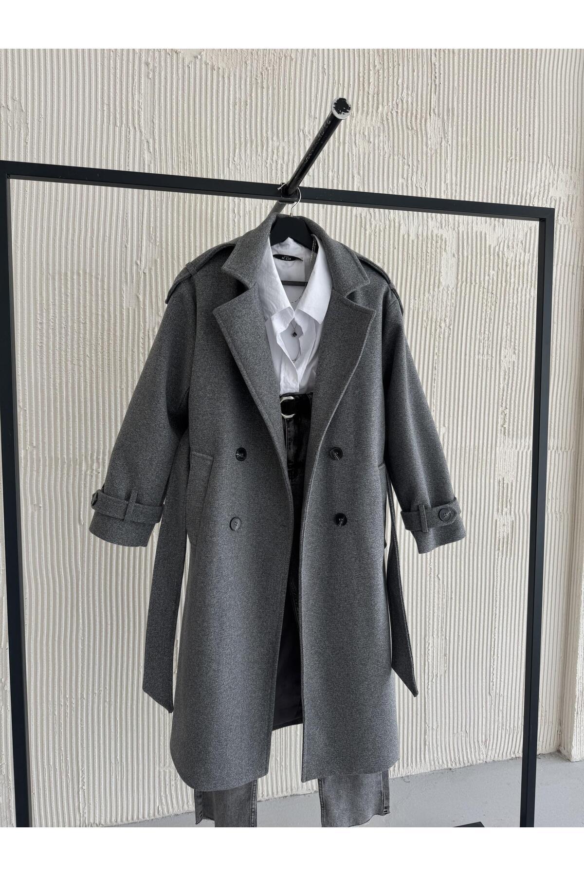 Premium Modern Antrasit Kaşe Kaban, yumuşak dokusu, geniş yakası ve detaylarla zenginleştirilmiş tasarımı sayesinde ister günlük kombinlerde, ister ofis şıklığında fark yaratın.