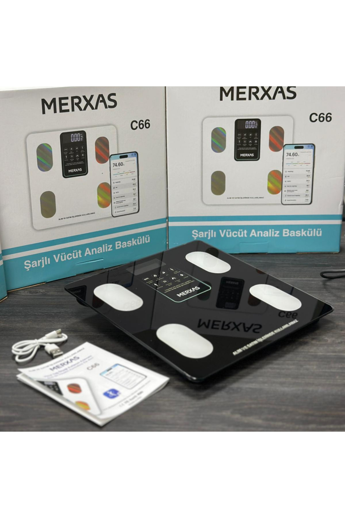 C66 Şarjlı Ekranlı Vücut Yağ Ölçekli Banyo Baskülü Akıllı Bluetooth Şarjlı Tartı Mobil Uygulamalı