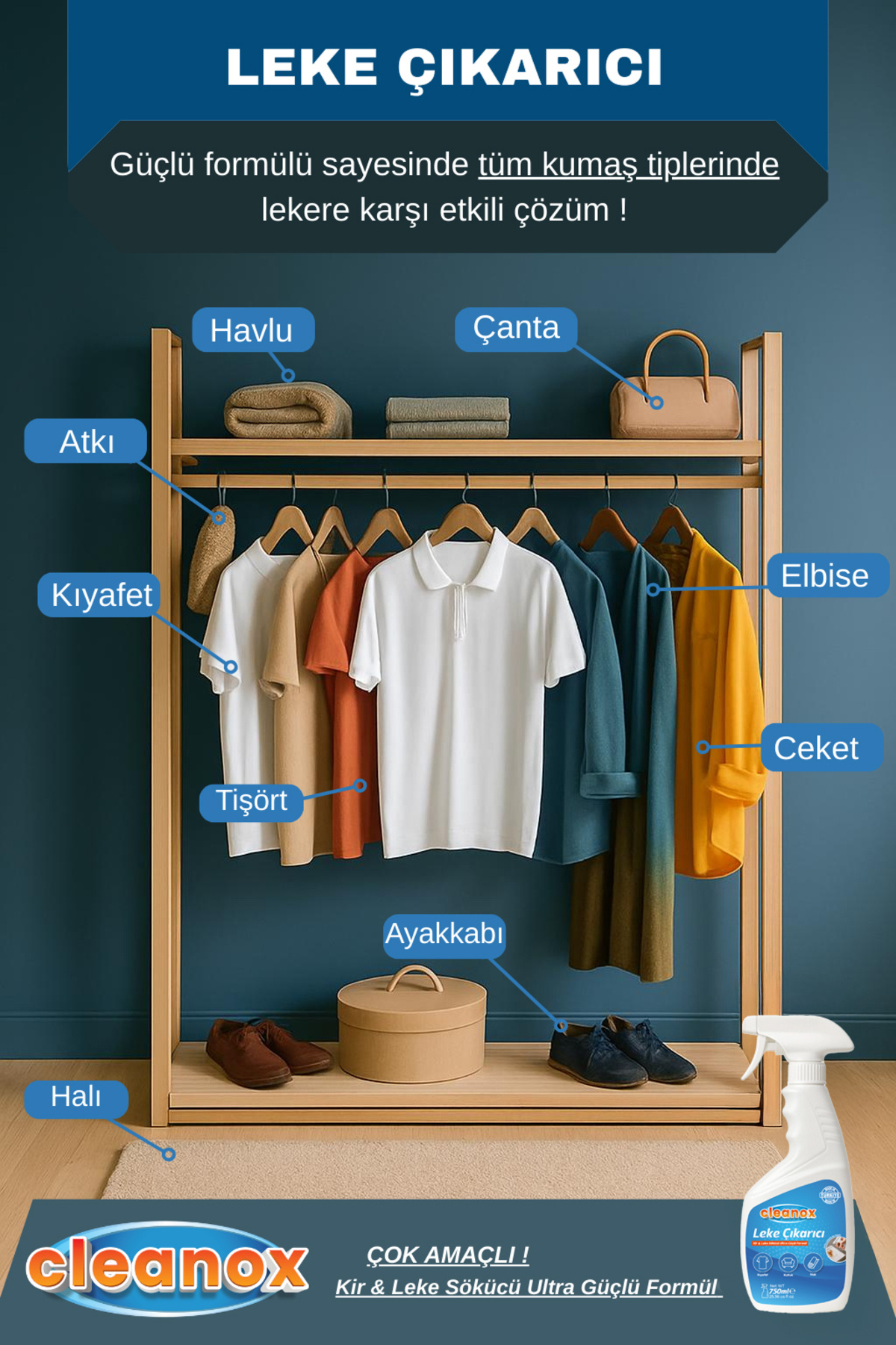 750 ml leke çıkarıcı, özel geliştirilmiş formülü sayesinde zorlu lekeleri hızla çözer ve yüzeylerde derinlemesine temizlik sağlar.