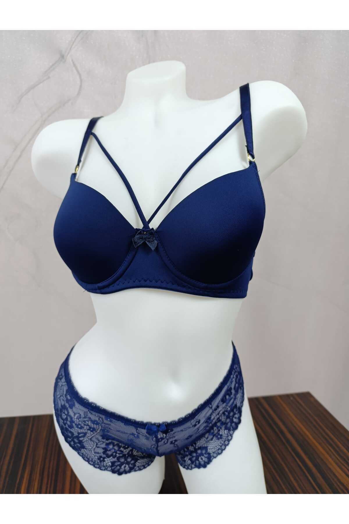 - Lacivert rengin asaletini yansıtan iç çamaşırı takımı, hem gündüz hem de gece kullanımına uygun tasarlanmıştır.