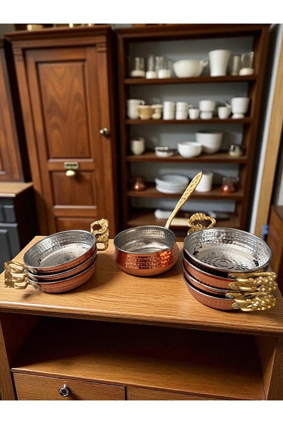 El işçiliği 8 parça Bakır set7 adet sahan - 11 cm1 adet sosluk 10 cmİçleri kalaylıdır.