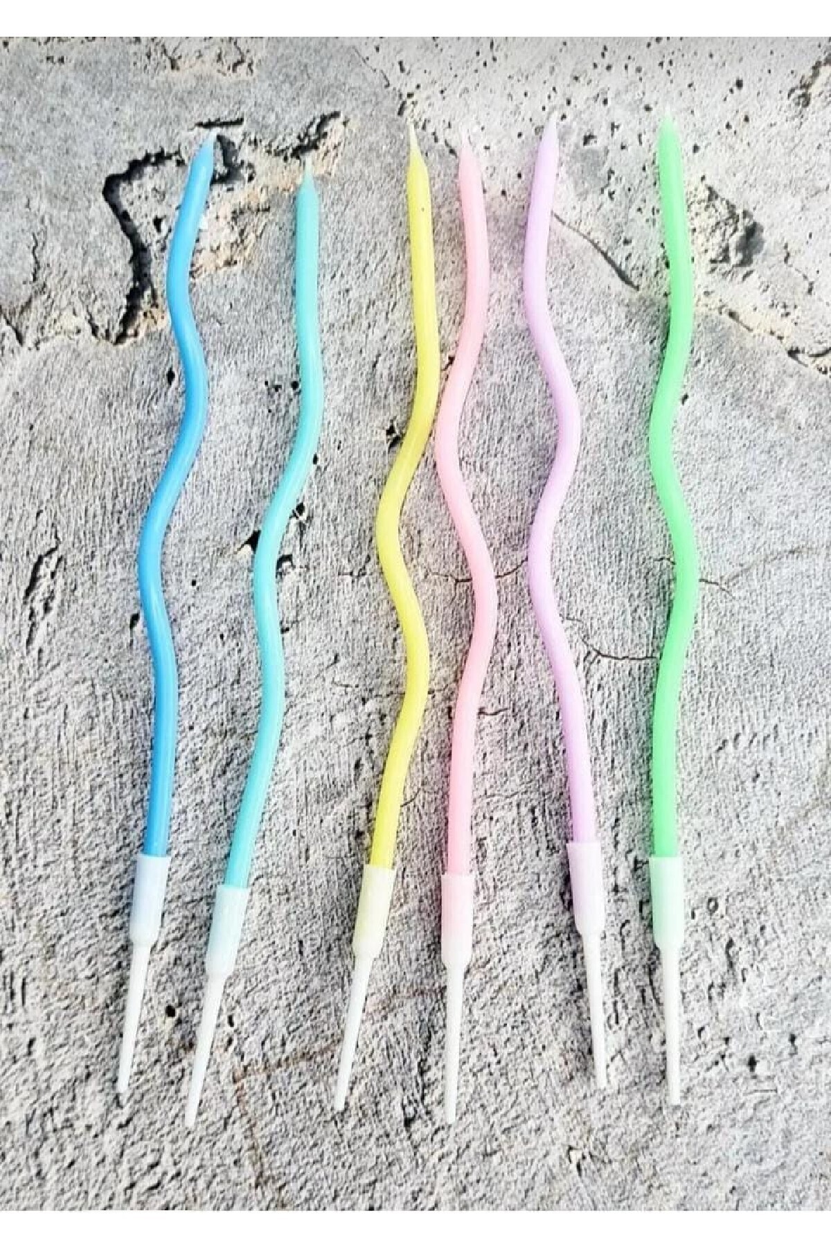 Makaron Renk Parlak 6 lı Spiral Kıvrımlı Pasta Mumu Doğumgünü Pastası Mumu Mum