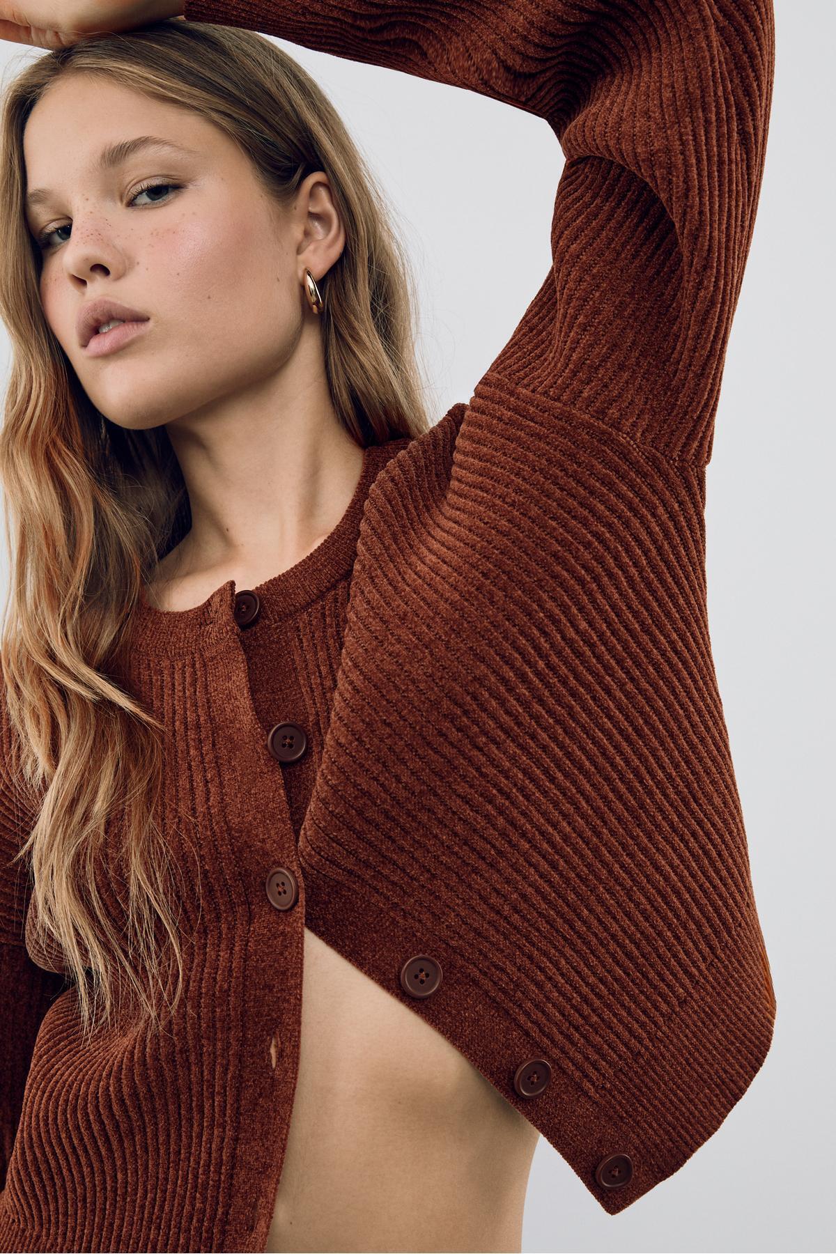 Yumuşak dokulu ve fitilli örme kumaştan üretilmiş ceket.