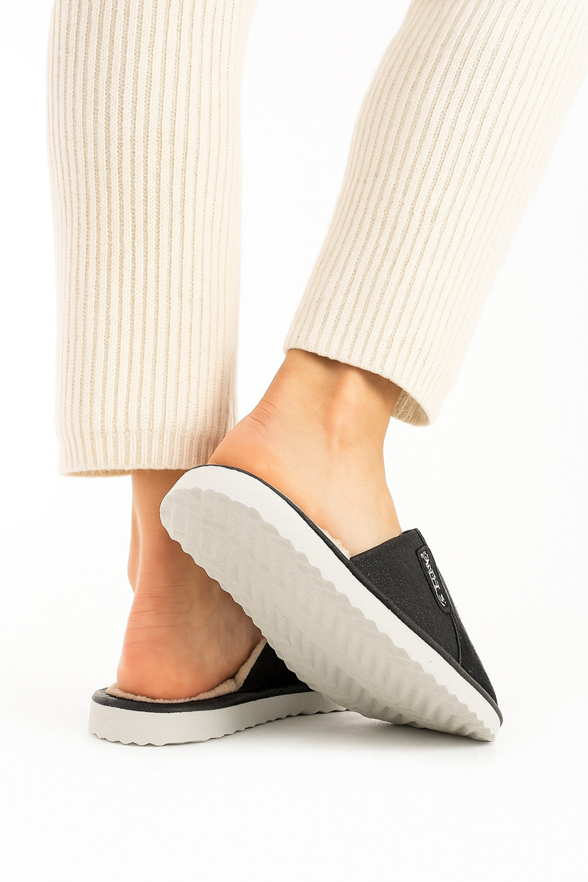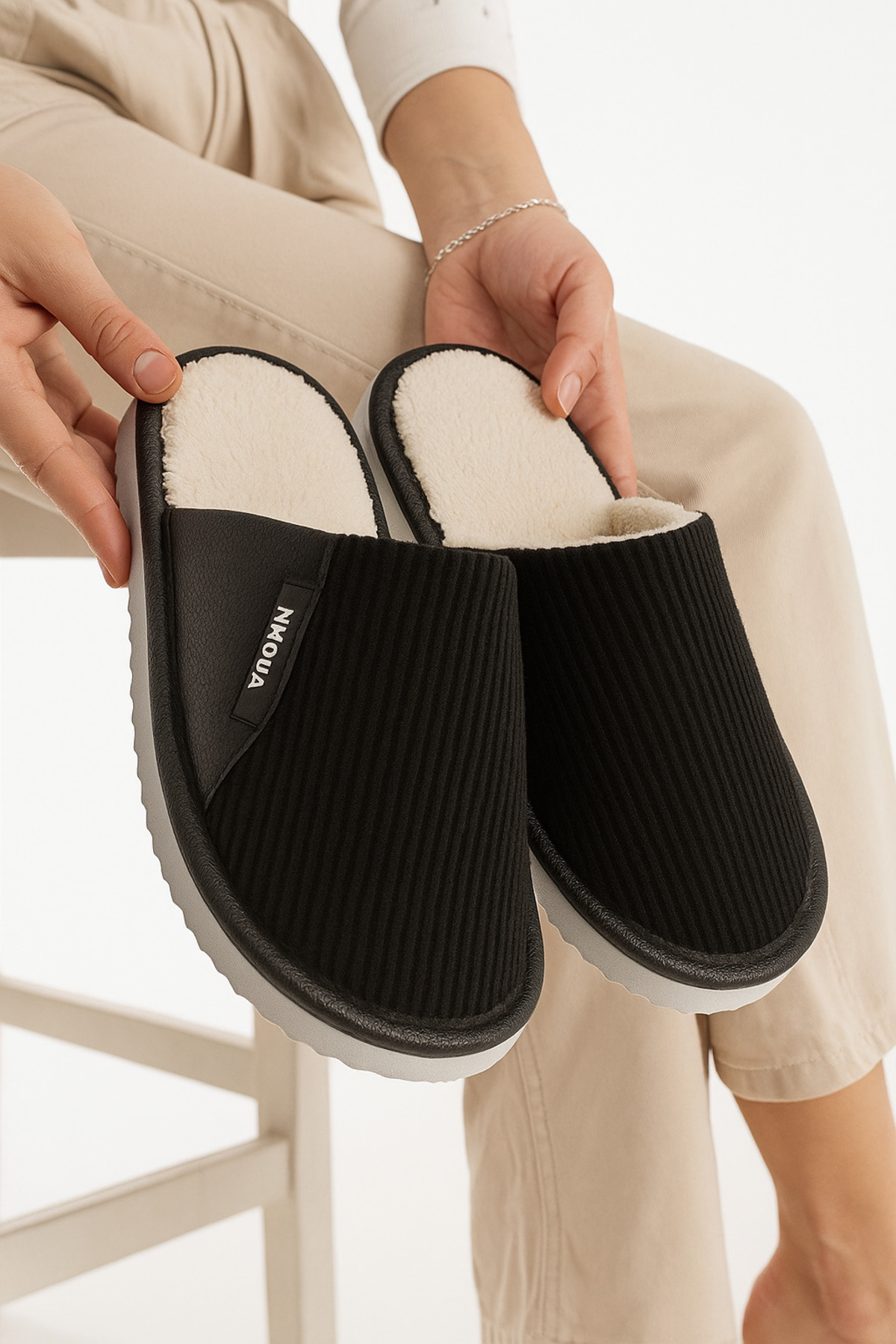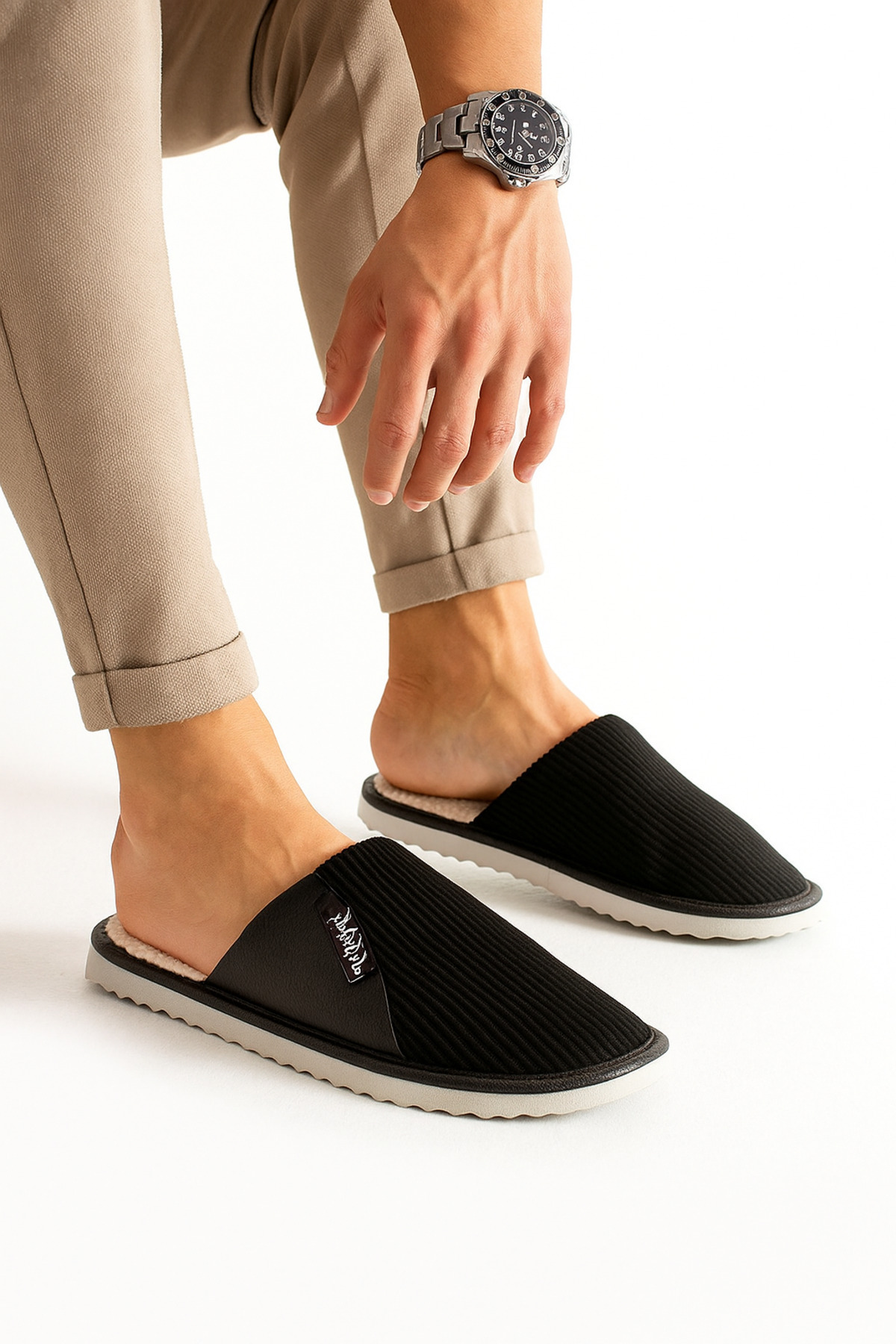 Unisex Ev Terliği Kaymaz Tabanlı Ribana Kumaş Konforlu Model Şık ve Konforlu Ev İçi Terlik Yarı Deri