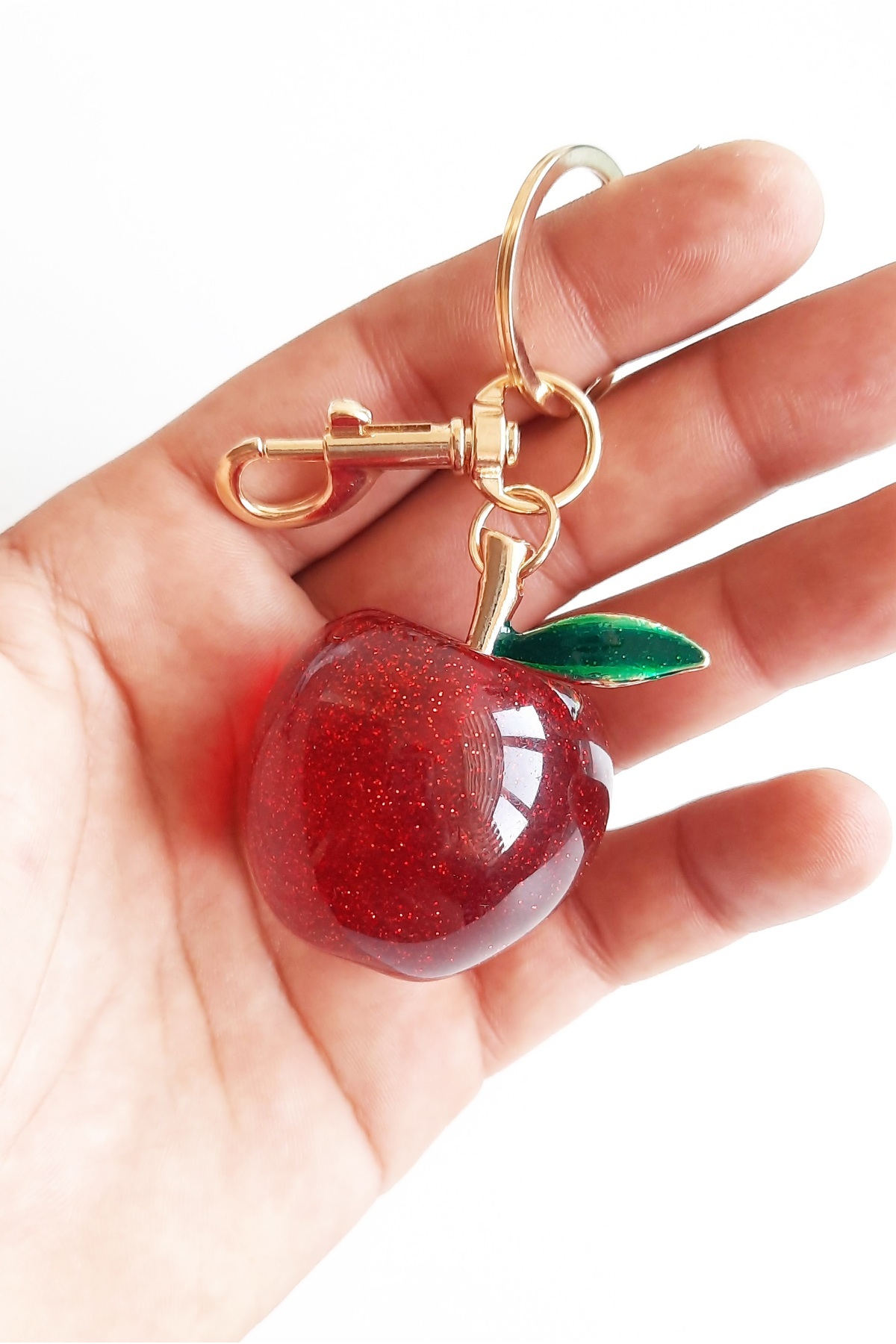 Elma Tasarımlı Anahtarlık | Çanta Charmı & Yapraklı Elma Hediyelik Çanta Aksesuarı Süsü