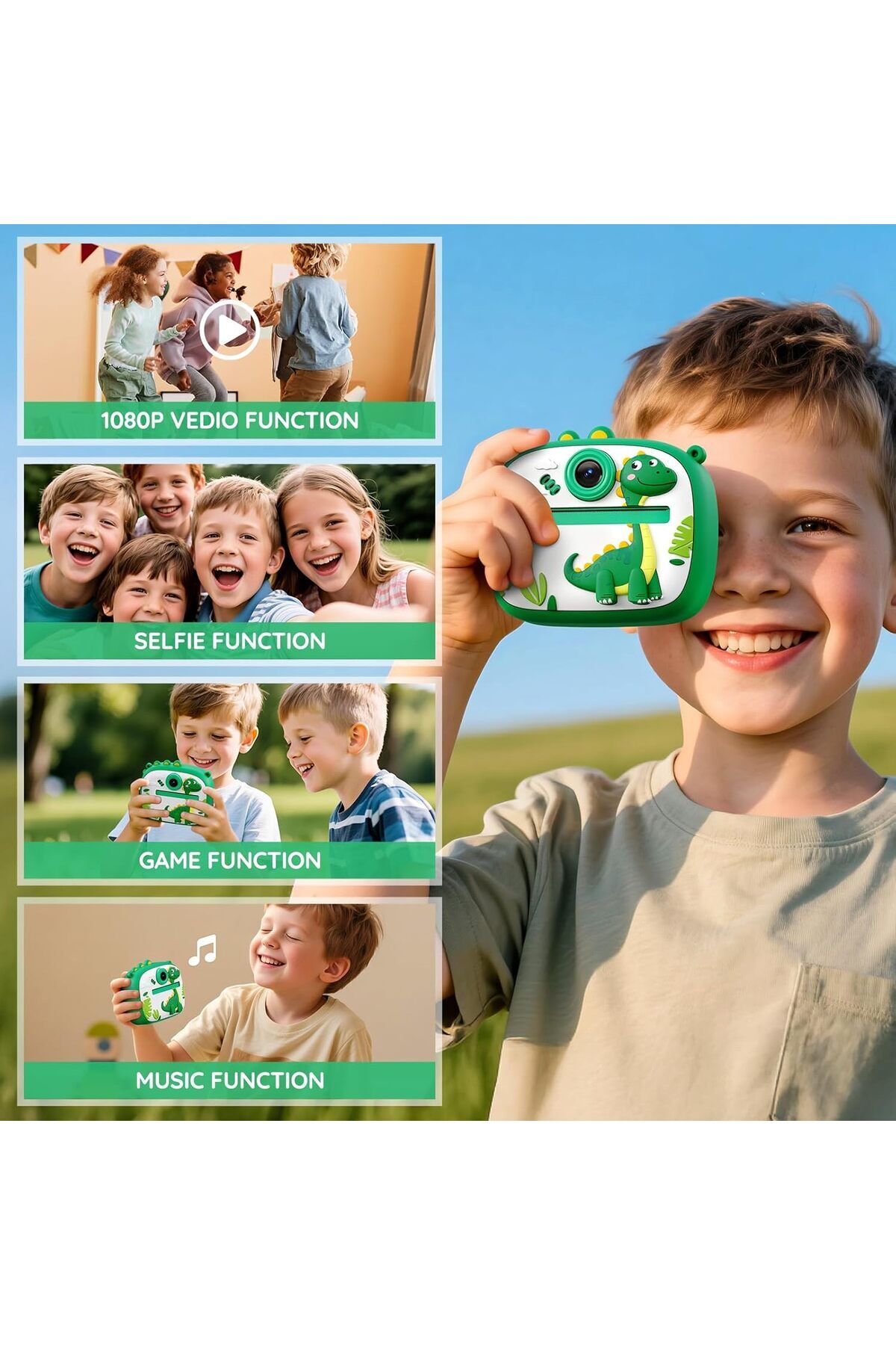 Sevimli Unicorn ve Dinozor Seçenekli Çocuk Kamerası – Anında Baskı Mini Fotoğraf Makinesi Kabartmalı