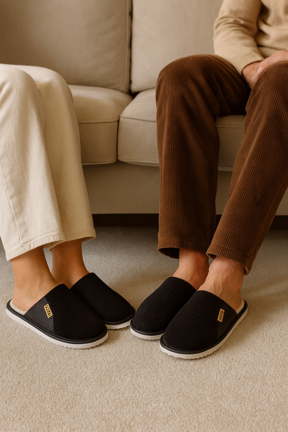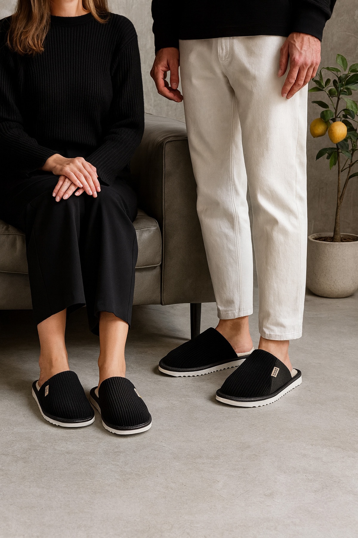Beyond Unisex Siyah Kadife Deri Detaylı Ev Terliği BYNDHOME02, hem kadın hem erkekler için şıklığı ve konforu bir araya getirir. Siyah rengin klasik ve zamansız şıklığı, kadife kumaşın yumuşacık dokusu ve deri detayların zarif tasarımıyla birleşerek evinizde estetik bir görünüm sunar. Peluş yapısı ayakları sıcacık sarar, uzun süreli kullanımda bile rahatlığı ön planda tutar.