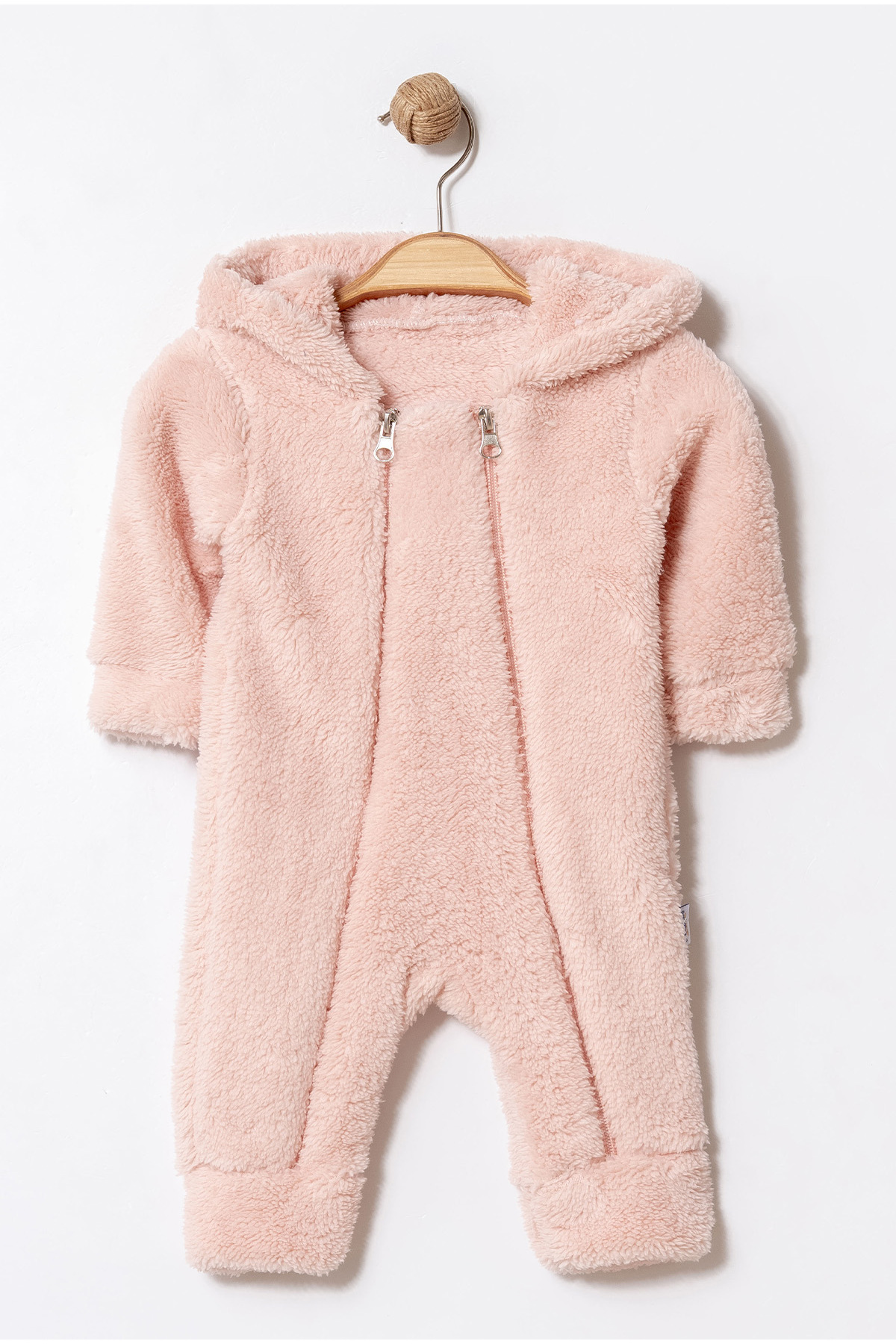 Kışlık Tatlı Çift Fermuarlı Kapüşonlu Peluş Bebek Tulum