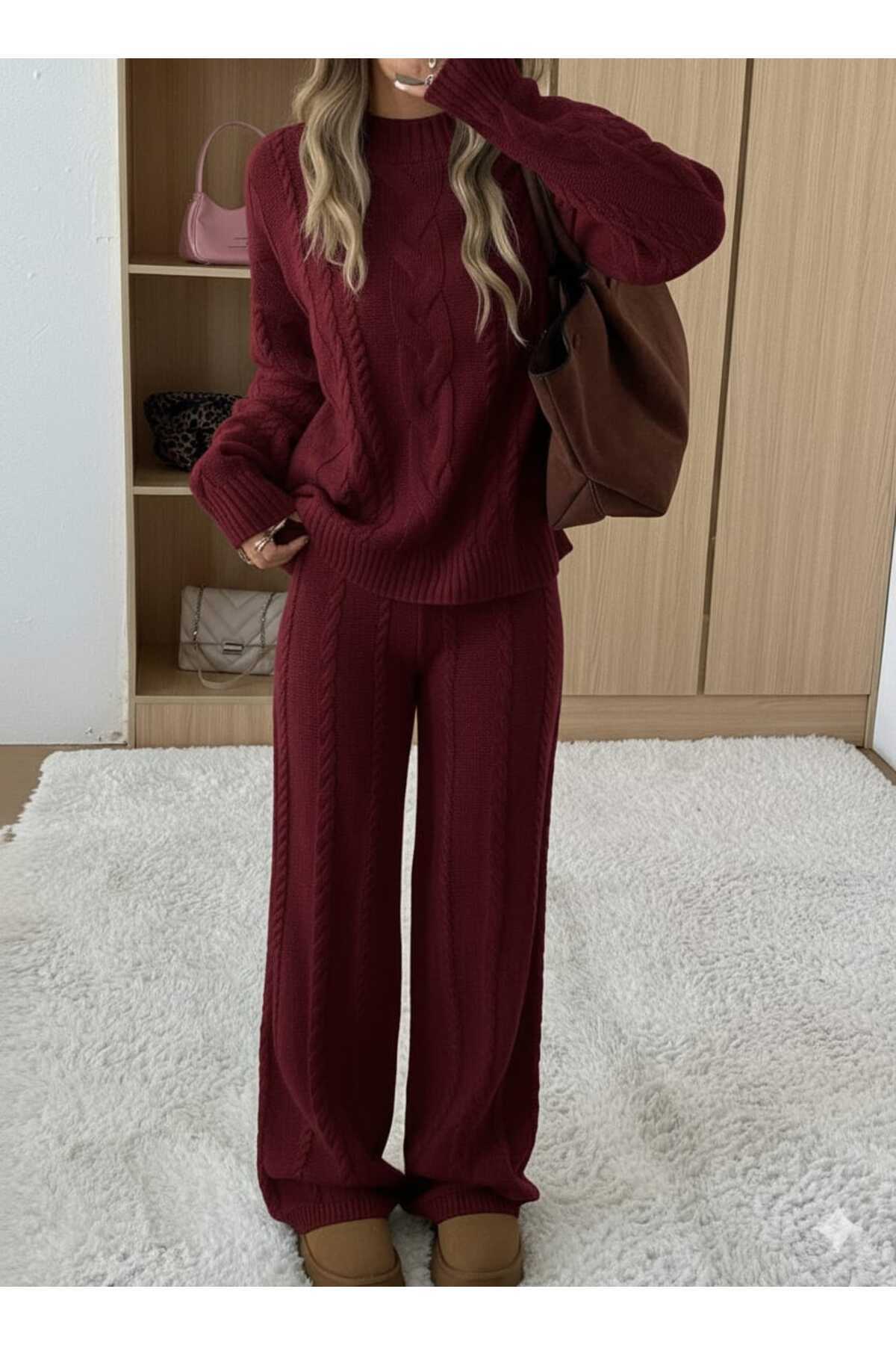 kalın saç örgülü alt-üst triko takım