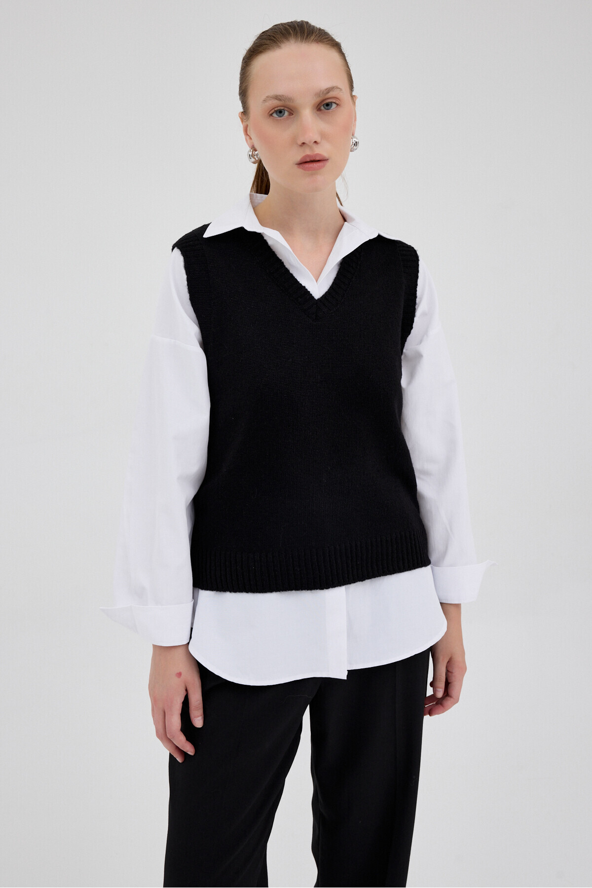 Siyah Oversize V Yaka Kadın Süveter 2292