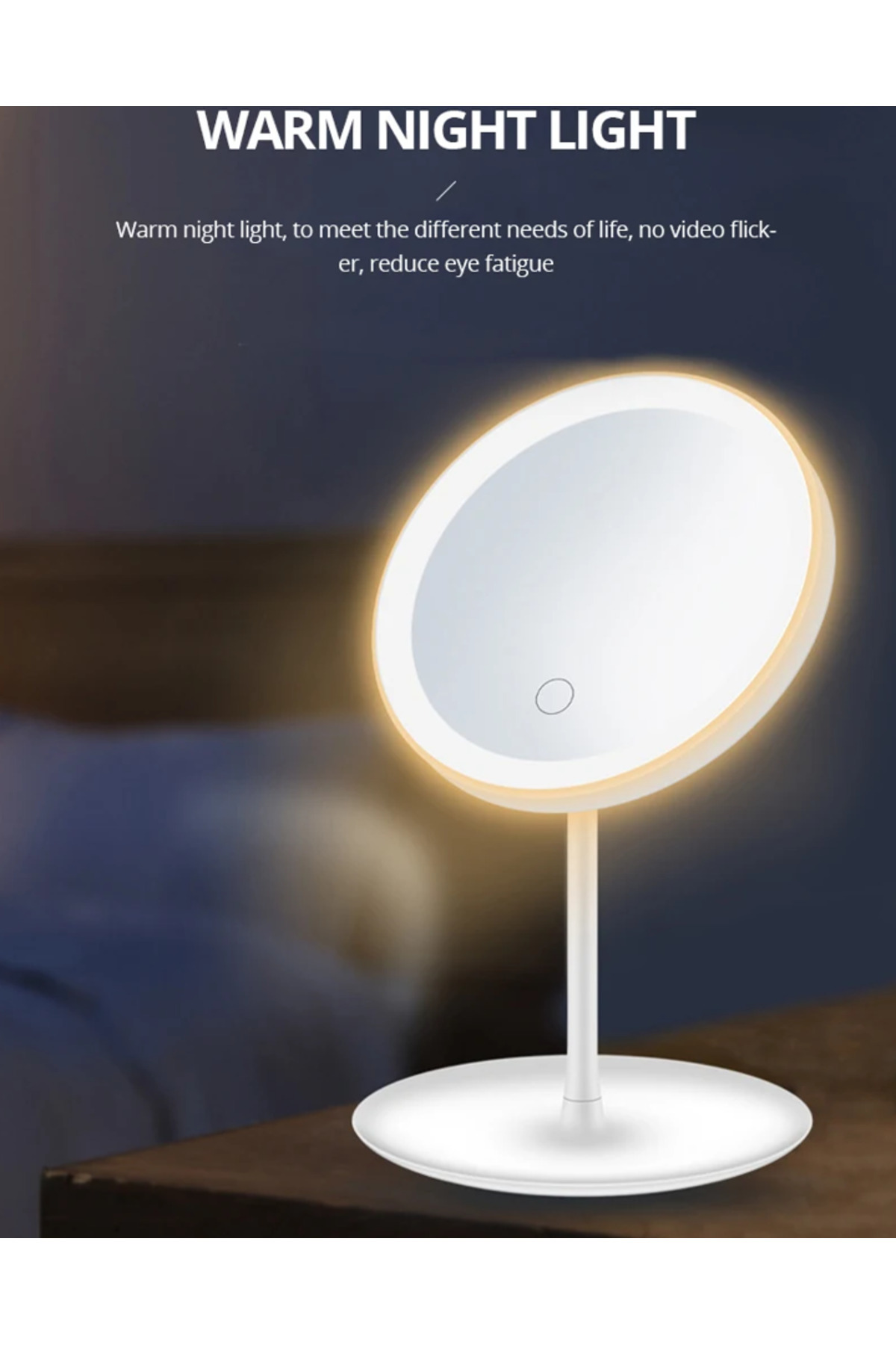 3 Mod Led Işıklı Usb Şarjlı Yuvarlak Masa Üstü Makyaj Aynası Makyaj Aynası Dokunmatik