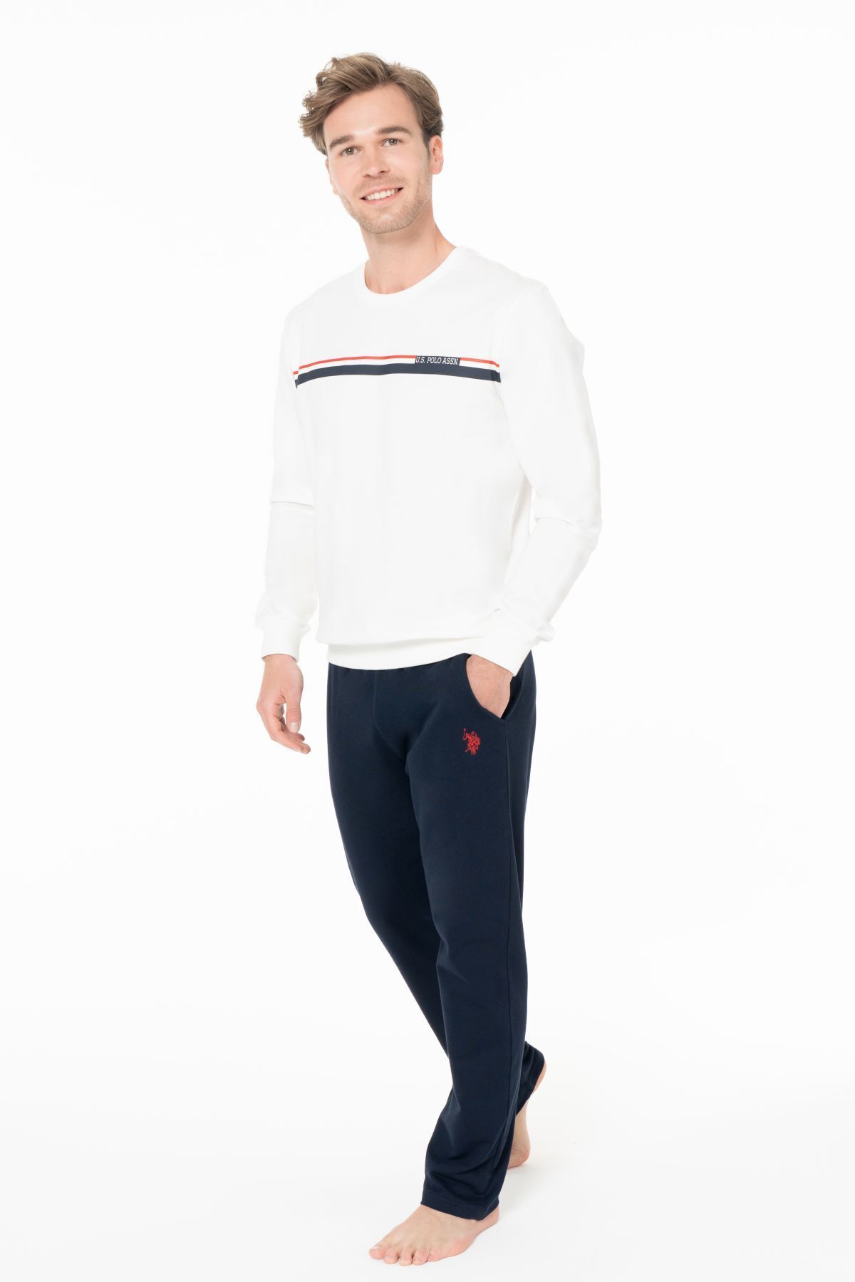 U.s Polo Assn. 18925 Erkek Uzun Kollu Bisiklet Yaka Rahat Ev Giyim-Ekru