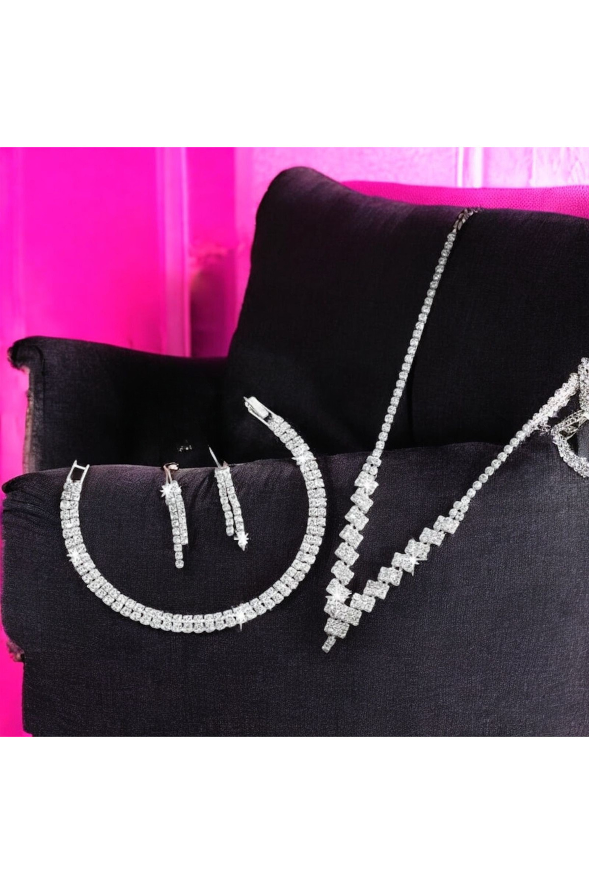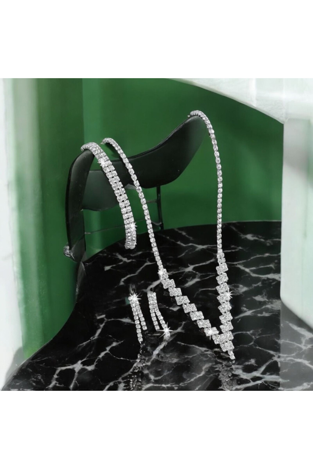 Düzensiz geometrik şekiller ile süslenmiş pirinç şerit gümüş lak kaplama alerji yapmaz kararmaz uzun süre kulanima uygun süper ve şık bir takı seti düğün kına nişan söz gibi tüm davetler de rahatça her kıyafetle uyumlu bir 3 set