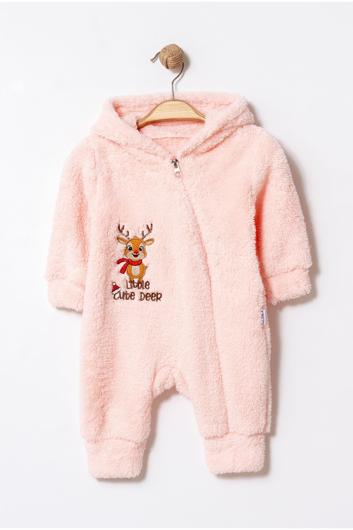 Kışlık Tatlı Ren Geyikli Nakışlı Kapüşonlu Welsoft Fermuarlı Bebek Tulum